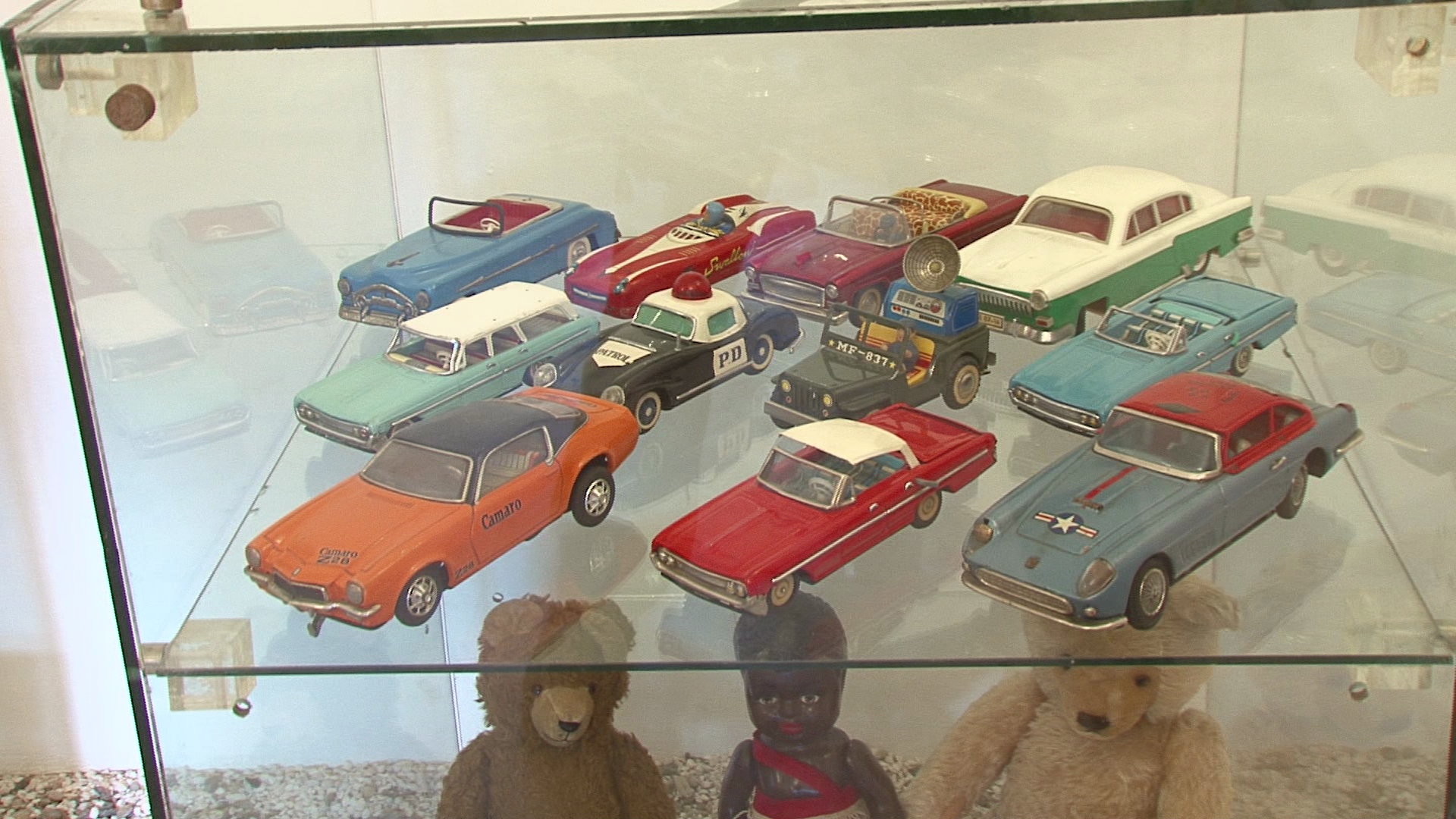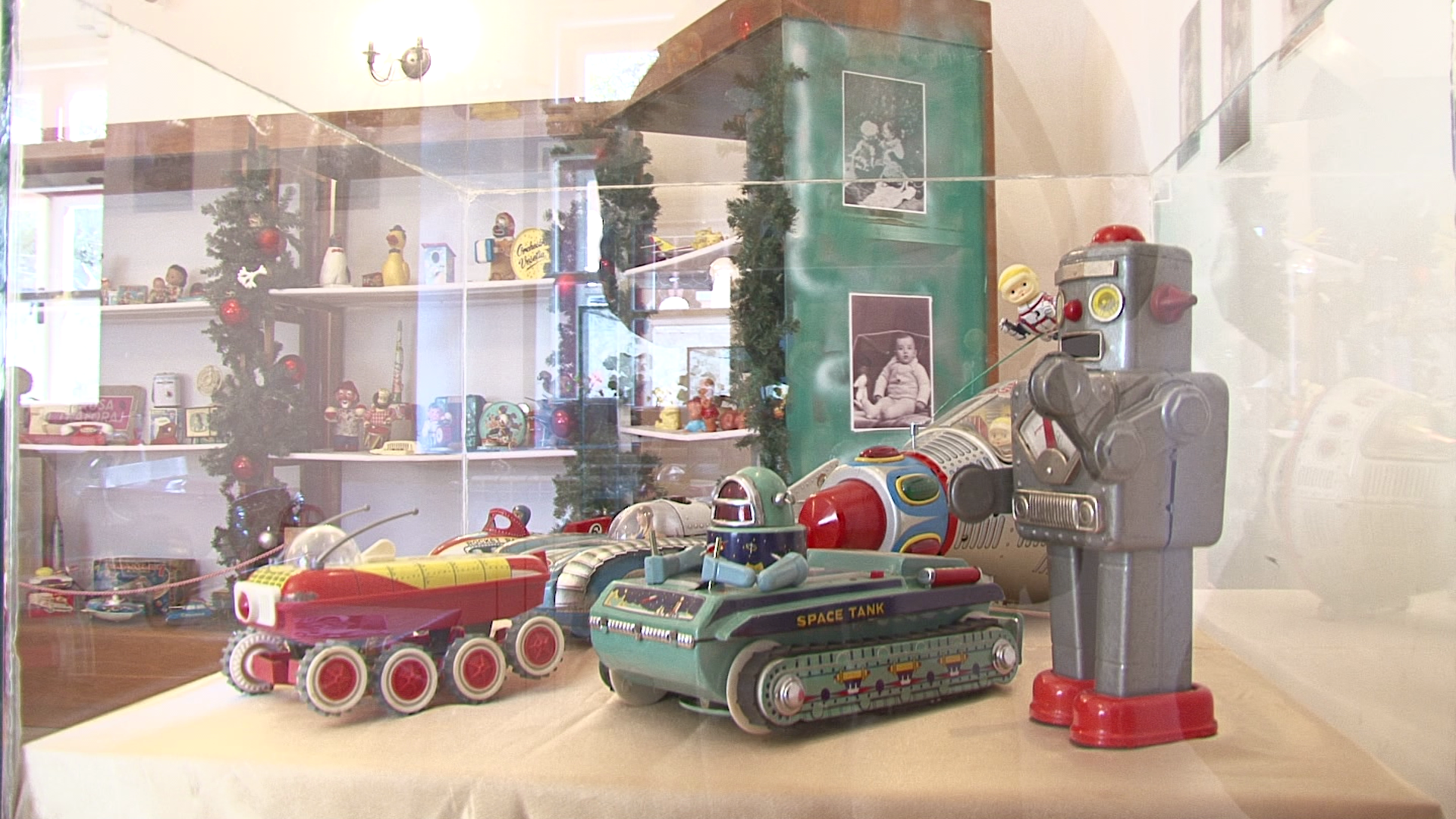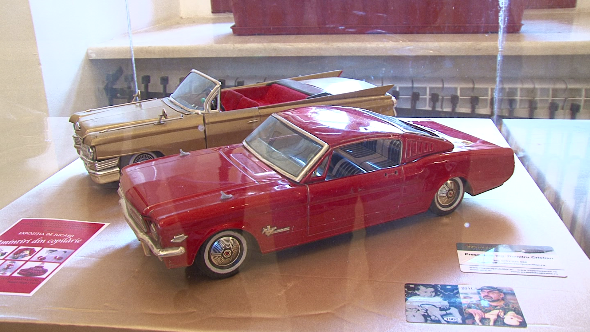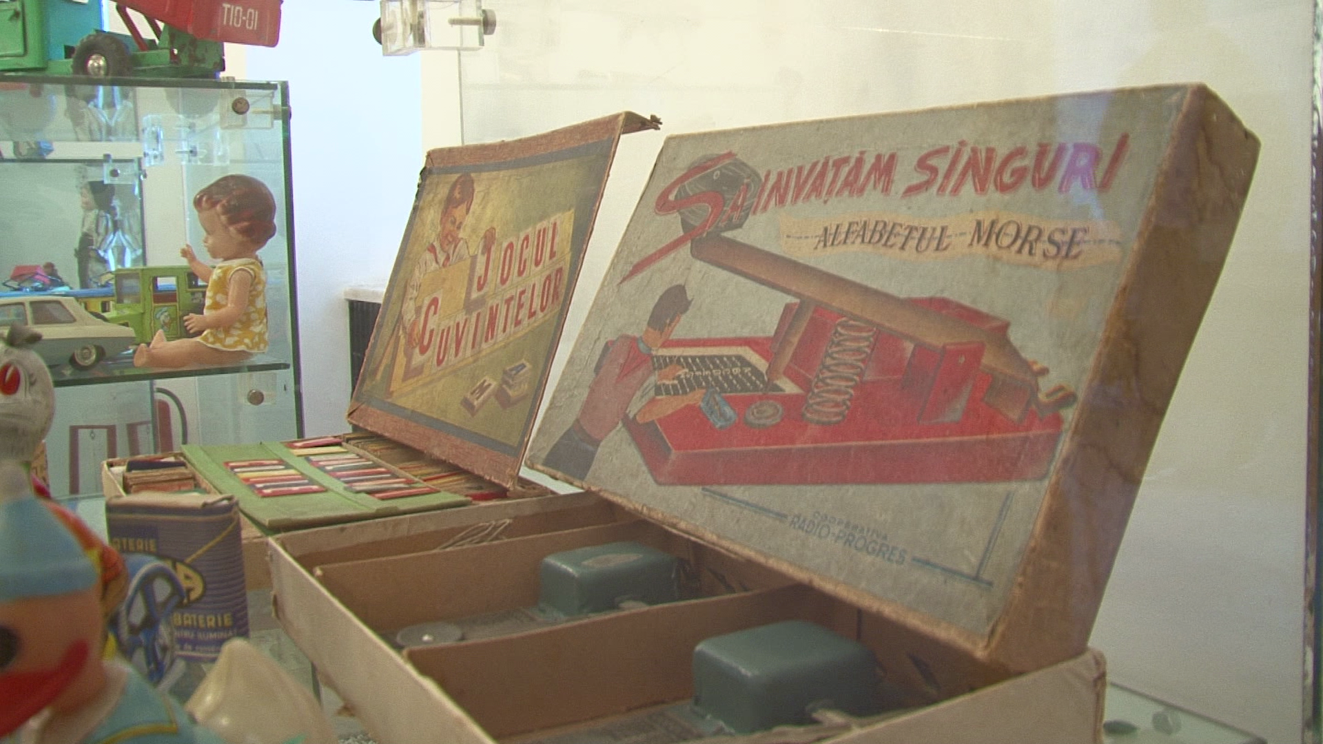 „Exponentele sunt grupate tematic pe vitrine ce contin masinute, trenulete, avioane, papusi, ursuleti, animale de plus, figurine, jocuri, roboti, instrumente muzicale, nave cosmice, vapoare, arme, trotinete, caluti de lemn, masinute cu pedale. Jucariile au fost fabricate in Romania, China, Germania, Polonia, Ungaria, URSS, Japonia, Bulgaria, Franta si Cehoslovacia intre anii 1900-1980. In cea mai mare parte jucariile au fost achizitionate in Romania in ultimii 40 de ani si probabil vor trezi amintiri placute in randul parintilor”, a declarat, miercuri, la deschiderea expozitiei, colectionarul de jucarii Cristian Dumitru.