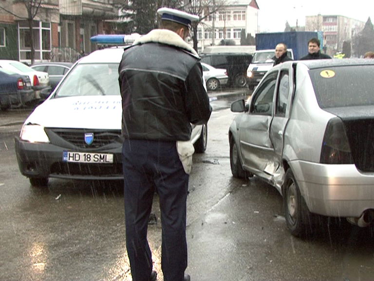 Accidentul a avut loc in aceasta dimineata, intr-o intersectie din centrul orasului Deva. Politistul nu a acordat prioritate si a lovit o masina a Institutului de Medicina Legala Hunedoara, apoi a ricosat intr-un alt autoturism parcat in apropiere. Nici politistul, nici cei care se aflau in celelalte doua autoturisme nu au fost raniti.
