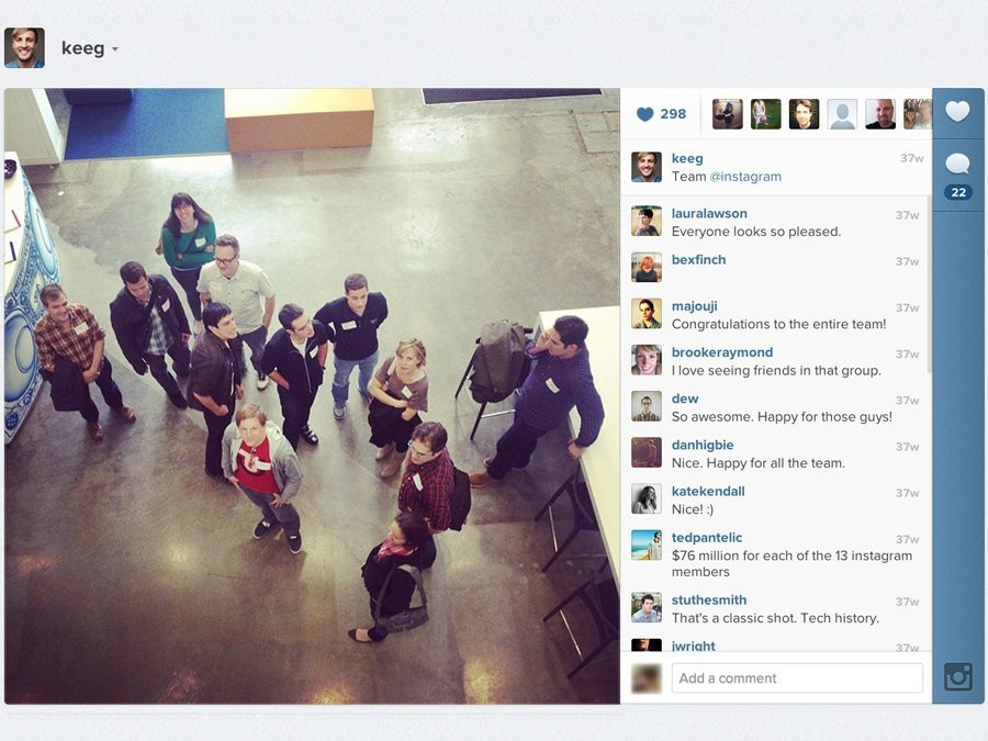 - imaginea cu echipa Instagram la sediul Facebook, inainte de achizitia de 1 miliard de dolari