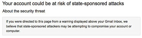 Mike Wiacek, un membru al echipei de securitate de la Google, a declarat pentru Times: "Zeci de mii utilizatori noi vor primi acest mesaj in cazul in care conturile lor vor fi compromise in vreun fel.", sustinand ca majoritatea acestor atacuri informatice sustinute de autoritati guvernamentale provin din tarile Orientului Mijlociu, refuzand insa sa dea nume.