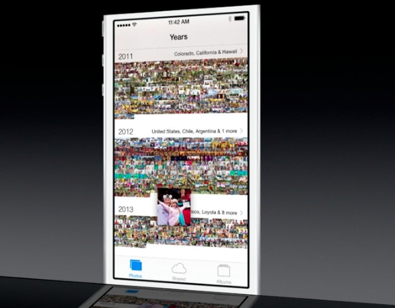 -> Photos App: De-acum fotografiile se organizeaza singure. Adica, se foloseste de localizare, iar in album iti va trece locul in care ai fotografiat si va fi totul impartit pe zile. Ca sa nu arate ca o gramade de poze, asa la nesfarsit. Dragut. Android insa, face deja asta de ceva vreme.