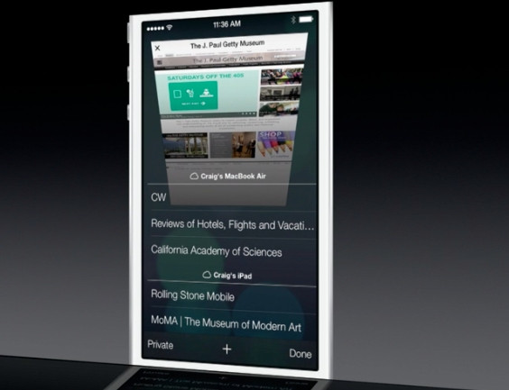 Browserul Safari a fost si el upgradat cu un nou 3D UI modul pentru schimbare a taburilor, oarecum similar browserului Chrome pentru Android. Din nefericire, veti fi limitati la numai 8 taburi.