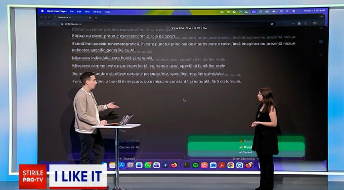 Nicoleta Ciubotaru, detectivulai.ro: „Ei bine, am încercat să facem cât mai prietenos și cât mai accesibil pentru toată lumea, indiferent de cunoștințe, dacă sunt cunoștințe tehnice, mai puțin tehnice, să poată să fie accesibil și să poată să înțeleagă într-un mod prietenos cum să detecteze practic diferitele fotografii care circulă pe internet, să își dea seama dacă sunt făcute cu inteligență artificială sau sunt reale. Dar pentru asta este nevoie să dezvoltăm un mușchi critic, nu exact ceva care să gândească sau să-ți pună un semn de întrebare dacă ce vezi acum este adevărat sau fals”.