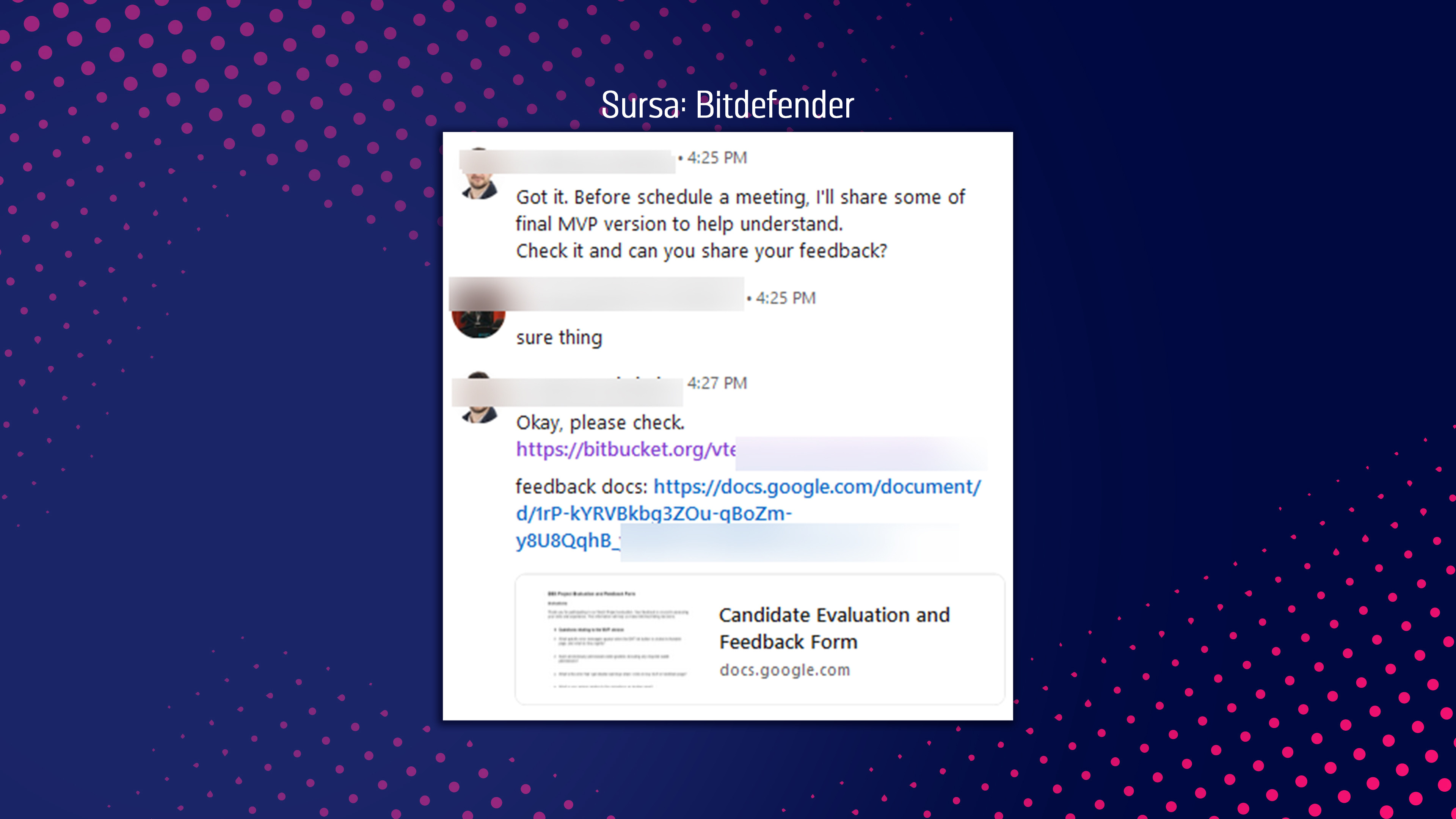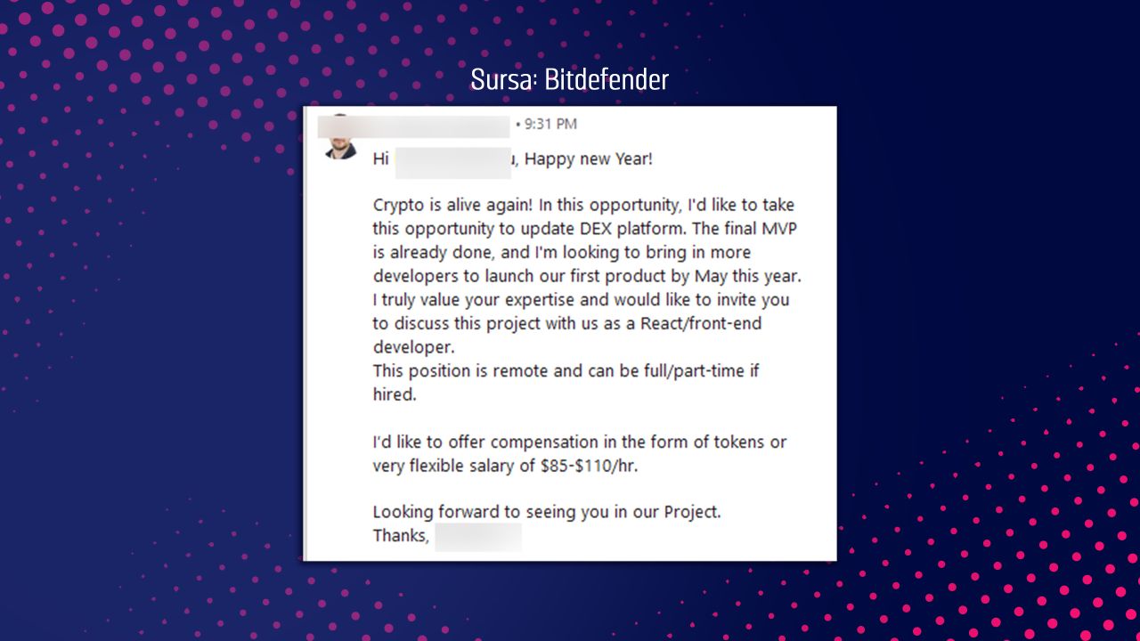 ”Au dat din greșeală un mesaj unui cercetător de la noi din companie, crezând că u dat peste un programator capabil, pe care voiau să-l abordeze”, a explicat reprezentantul Bitdefender.