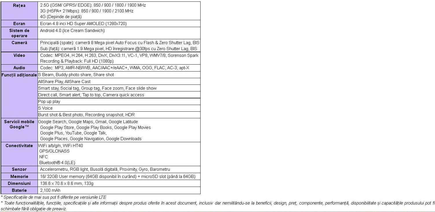 Samsung GALAXY S III - specificatii tehnice complete, noi functionalitati si GALERIE FOTO
