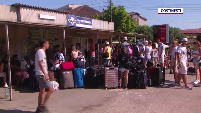 Gara Costinești, o gara mult prea mică pentru zecile de tineri care vin și pleacă de aici în fiecare zi. Sala de așteptare este una improvizată așa că cei mai mulți își petrec timpul în soare.