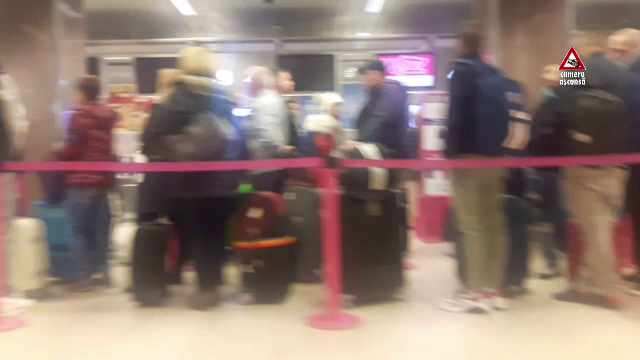 Imagini filmate cu camera asunsă la ghişeul din aeroport al companiei aeriene: