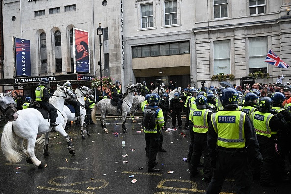„Când polițiștii au intervenit pentru a le bloca accesul, au fost atacați cu lovituri de pumn și picior”, a transmis Met, adăugând că trupe de intervenție, cai și câini de serviciu au fost mobilizați pentru a ține grupurile la distanță.
