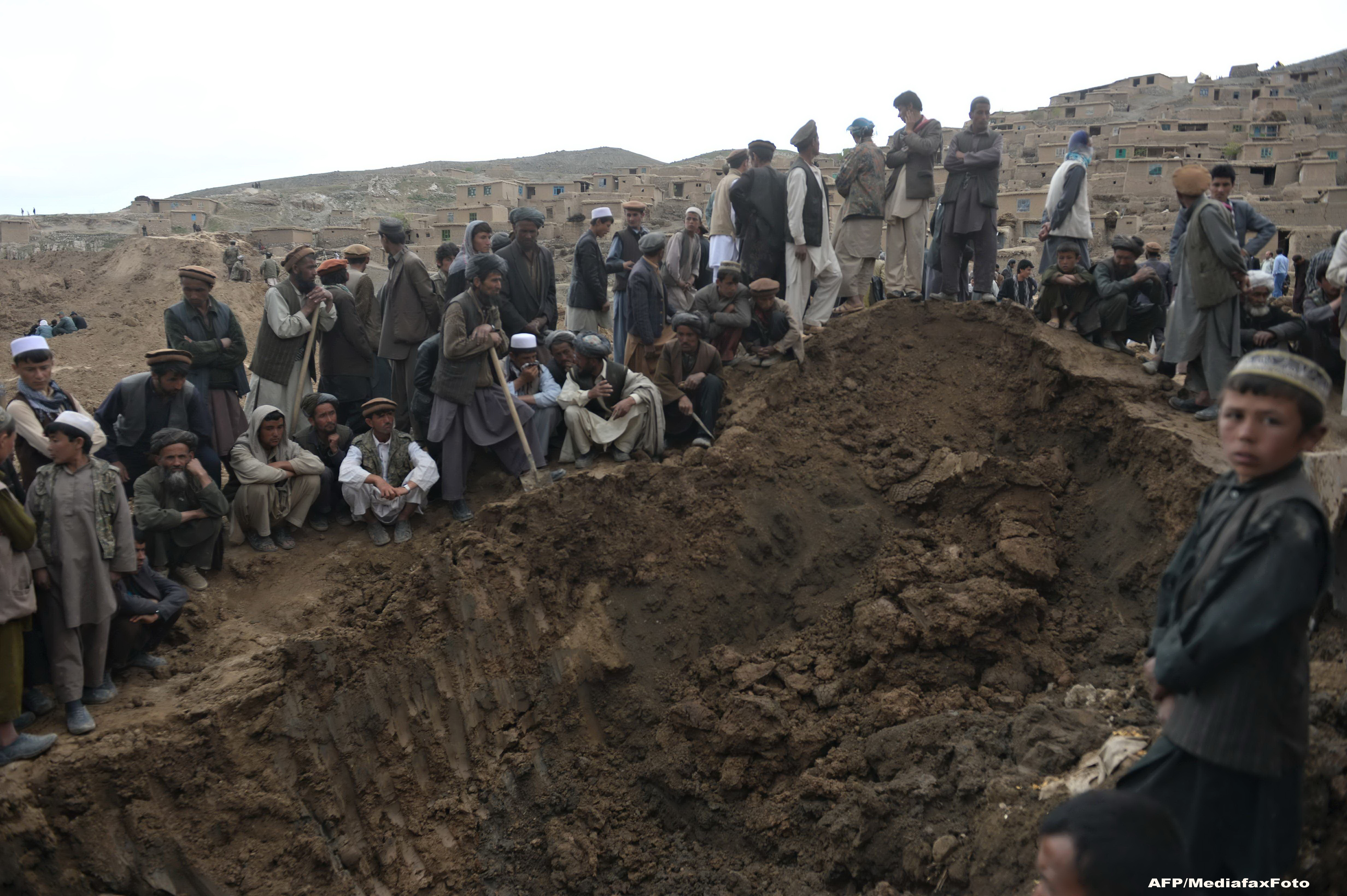 Zona in care a avut loc alunecarea de teren - satul Ab-e-Barak din provincia Badahshan - a fost declarata "groapa comuna" sambata, potrivit guvernatorului regional, Waliullah Adeeb. Zona a fost acoperita de un strat de 40 de metri de mal si pietre.