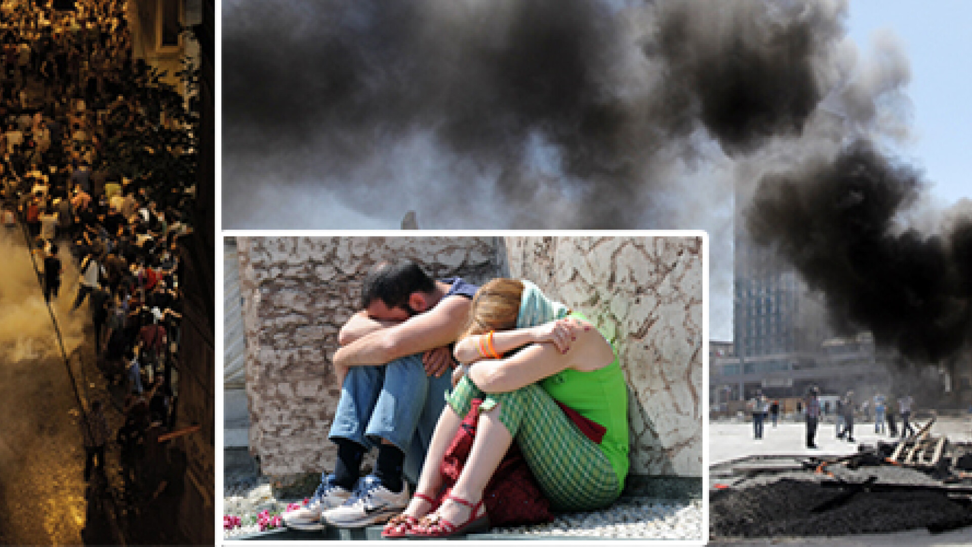Multi turisti sunt de asemenea afectati de gazele lacrimogene folosite in confruntari.