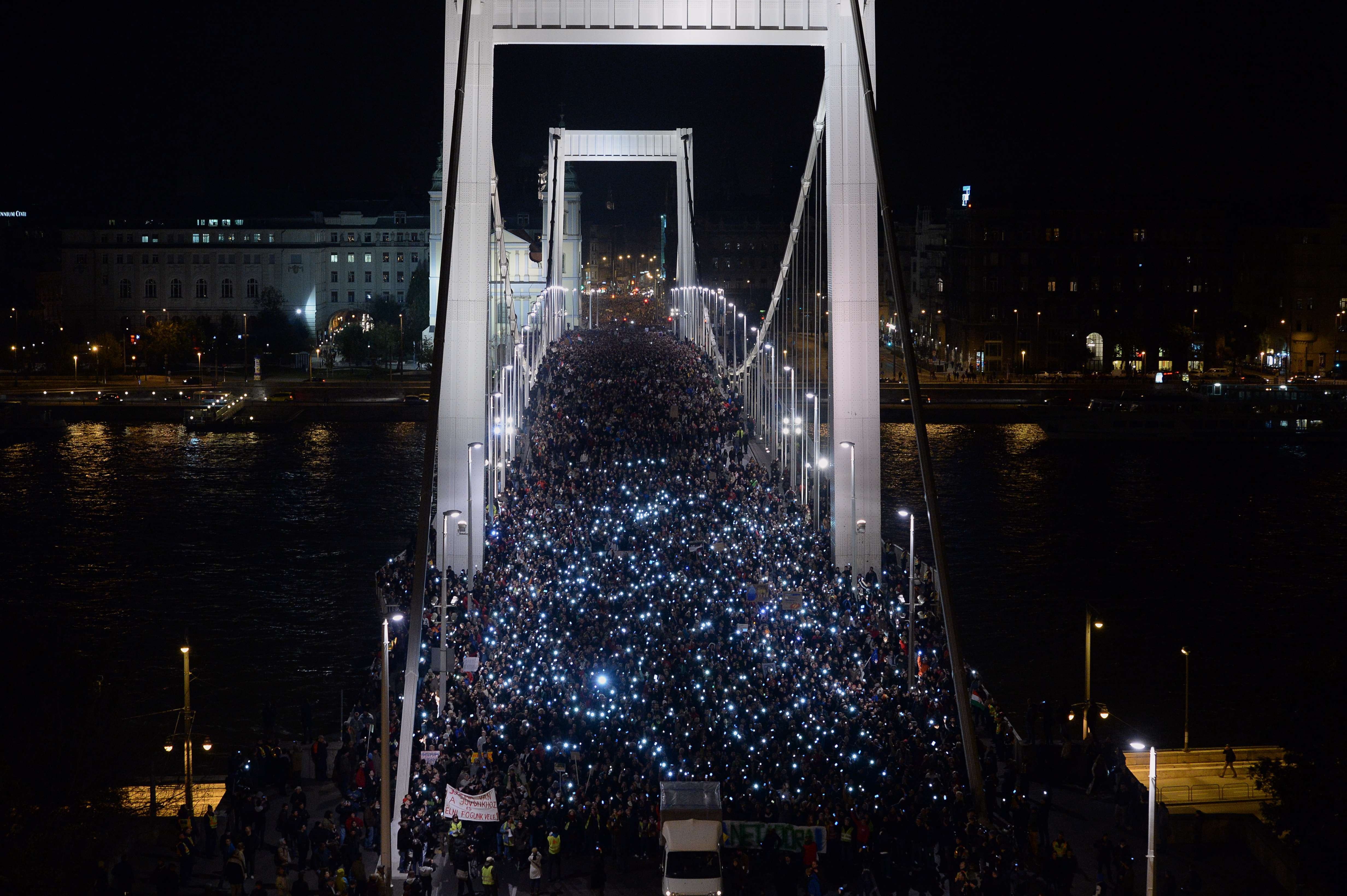 Imaginile unui protest cu zeci de mii de persoane la Budapesta. "Taxa pe internet" a lui Orban scoate poporul in strada