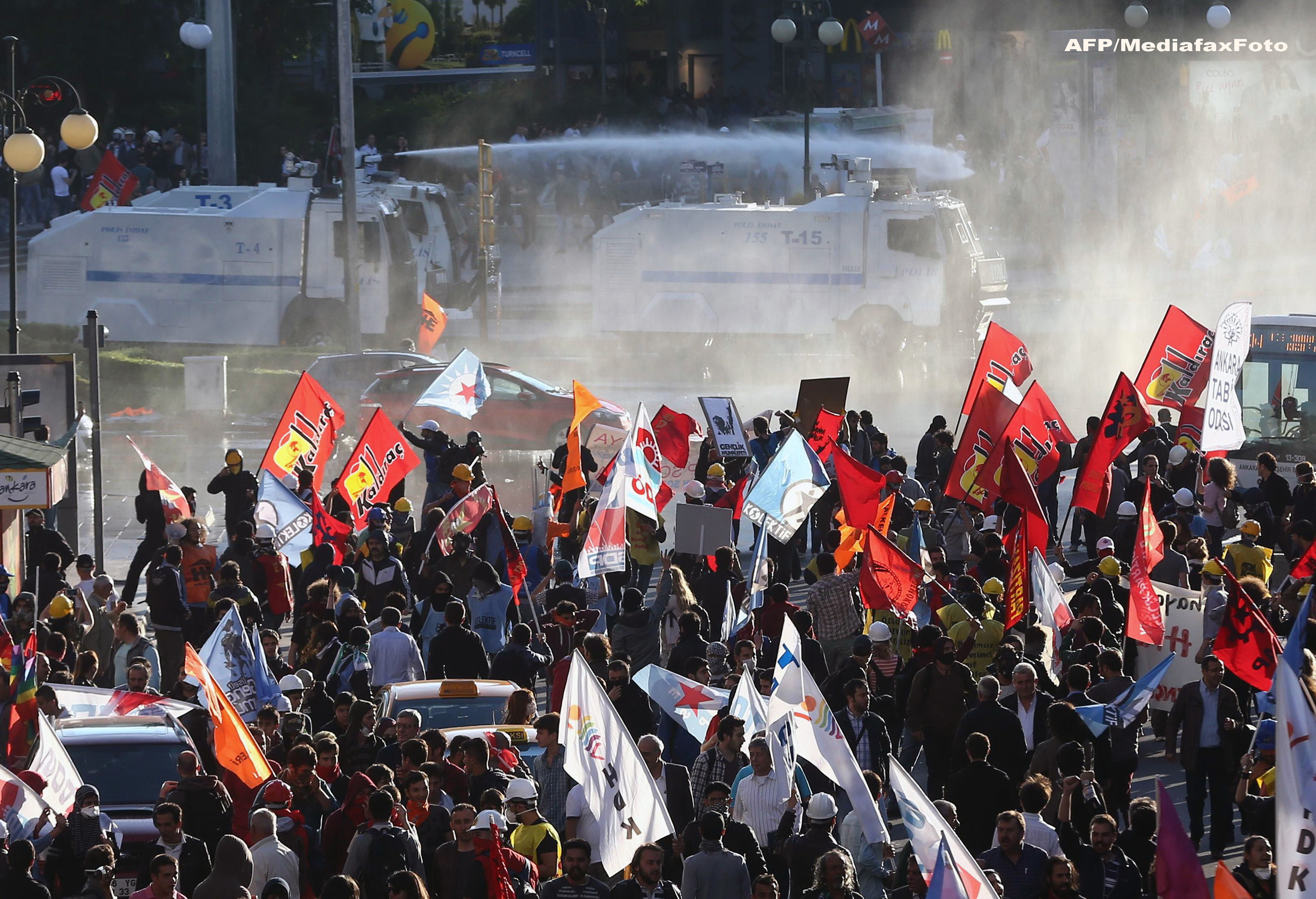 Politia a intervenit pentru a dispersa circa 500 de persoane din piata Kizilay, in centrul capitalei turce, in apropierea locului unde anul trecut un tanar manifestant in varsta de 26 de ani a fost ucis de gloante trase de politie, a constatat un fotograf al AFP.
