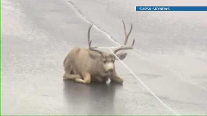 In fuga lui disperata pentru a scapa de un pradator periculos, un cerb din Statele Unite s-a aventurat fara sa isi dea seama pe un lac inghetat.
