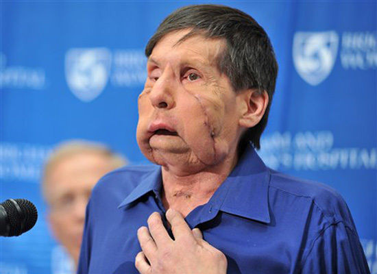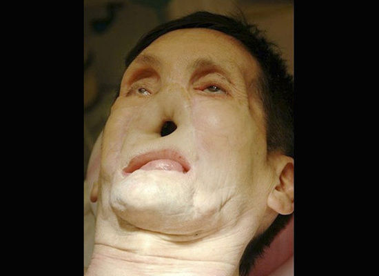 Atunci, centrul fetei i-a fost complet ars. De curand insa, a trecut printr-o operatie de 17 ore, iar o echipa de 35 de doctori i-au inlocuit trasaturile faciale. Pacientul a primit o noua structura nazala, buza superioara, piele, muschi si nervi.