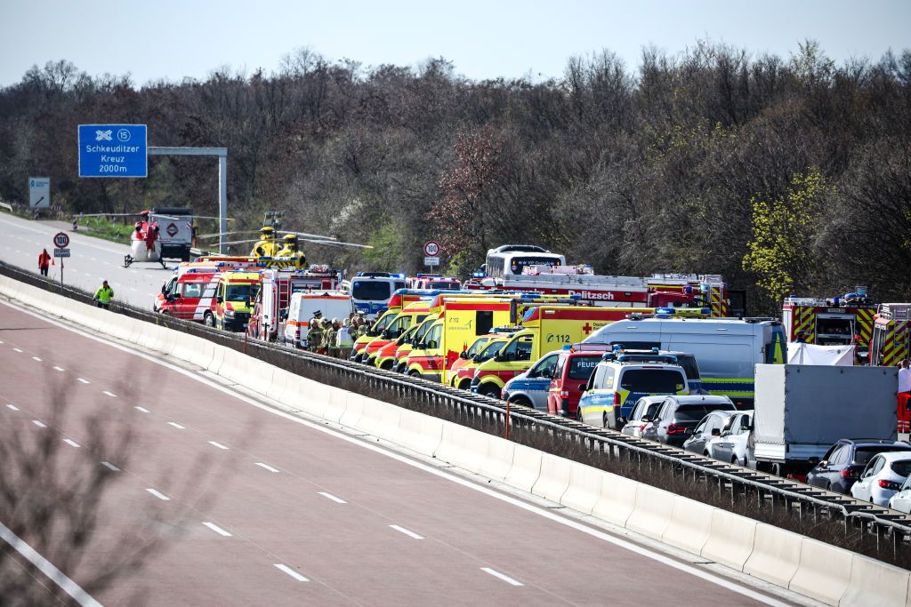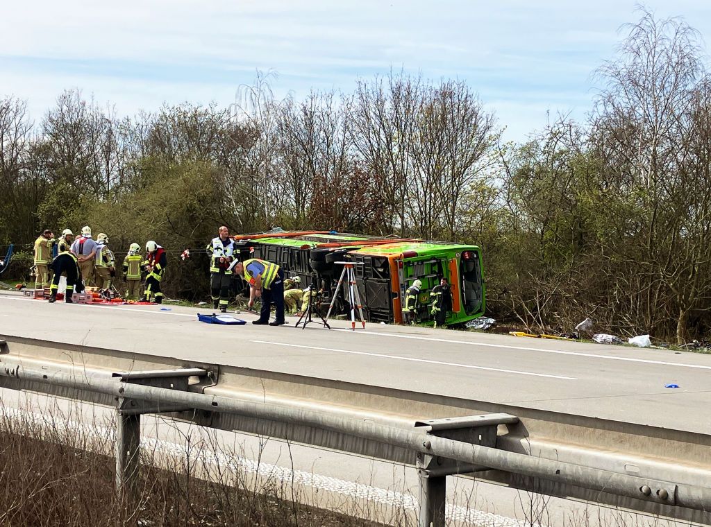Accidentul s-a petrecut pe autostrada A9 din Saxonia, miercuri dimineaţă, când un autocar al companiei Flixbus, cu 53 de pasageri şi doi şoferi la bord, a ieşit de pe carosabil şi s-a răsturnat în circumstanţe încă neclare. Poliţia a emis o alertă de situaţie de urgenţă gravă.