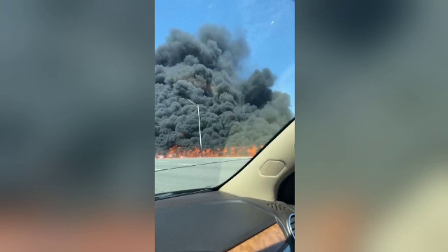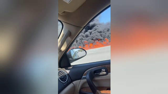 S-a ridicat o perdea imensă de fum negru, în timp ce 8 mii de litri de combustibil au ars.