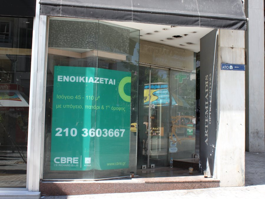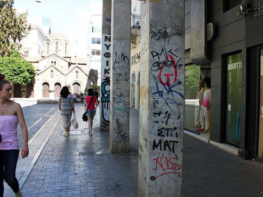 In 2007, Cushman & Wakefield numea strada Ermou din Atena printre primele 10 cele mai luxoase din lume. Azi, strada este plina de mizerie, vitrinele care odata adaposteau bijuterii si haine ale creatorilor mari de moda sunt acoperite cu ziare si mazgalite, iar pe trotuare dorm cainii vagabonzi.