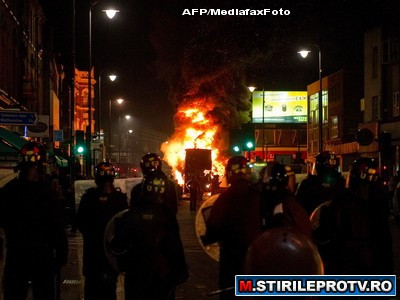 Sambata noaptea a fost una tensionata in cartierul Tottenham din nordul Londrei, transformat in scena unor proteste violente. Sute de britanici au iesit pe strazi, au incendiat o cladire si mai multe masini si au spart vitrinele magazinelor.