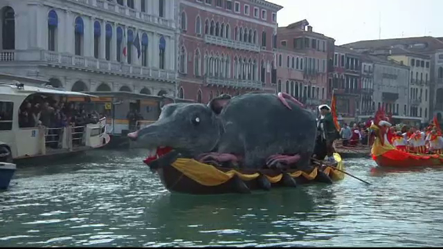 Parada ambarcaţiunilor de pe Marele Canal din Veneţia a fost deschisă de un şobolan uriaş - la fel ca în anii trecuţi. Este un animal care se regăseşte în legendele şi tradiţiile locale şi nu are legătură cu faptul că suntem în anul chinezesc al şobolanului.