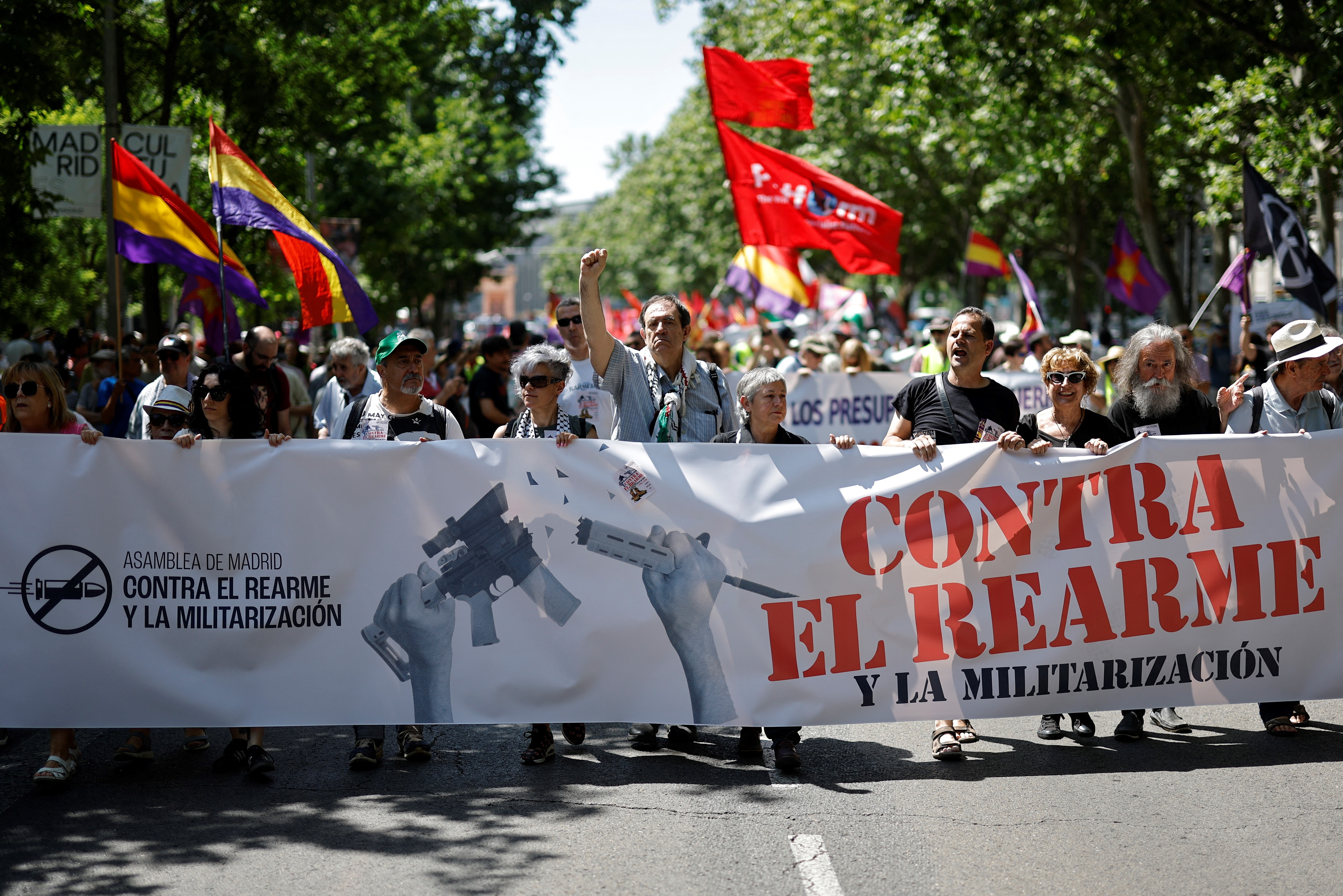 Aproximativ 3.000 de protestatari, potrivit estimărilor oficiale, s-au adunat sâmbătă în capitala spaniolă Madrid la o manifestaţie împotriva reînarmării Europei şi a creşterii cheltuielilor militare la 5% din PIB, transmite agenţia EFE.