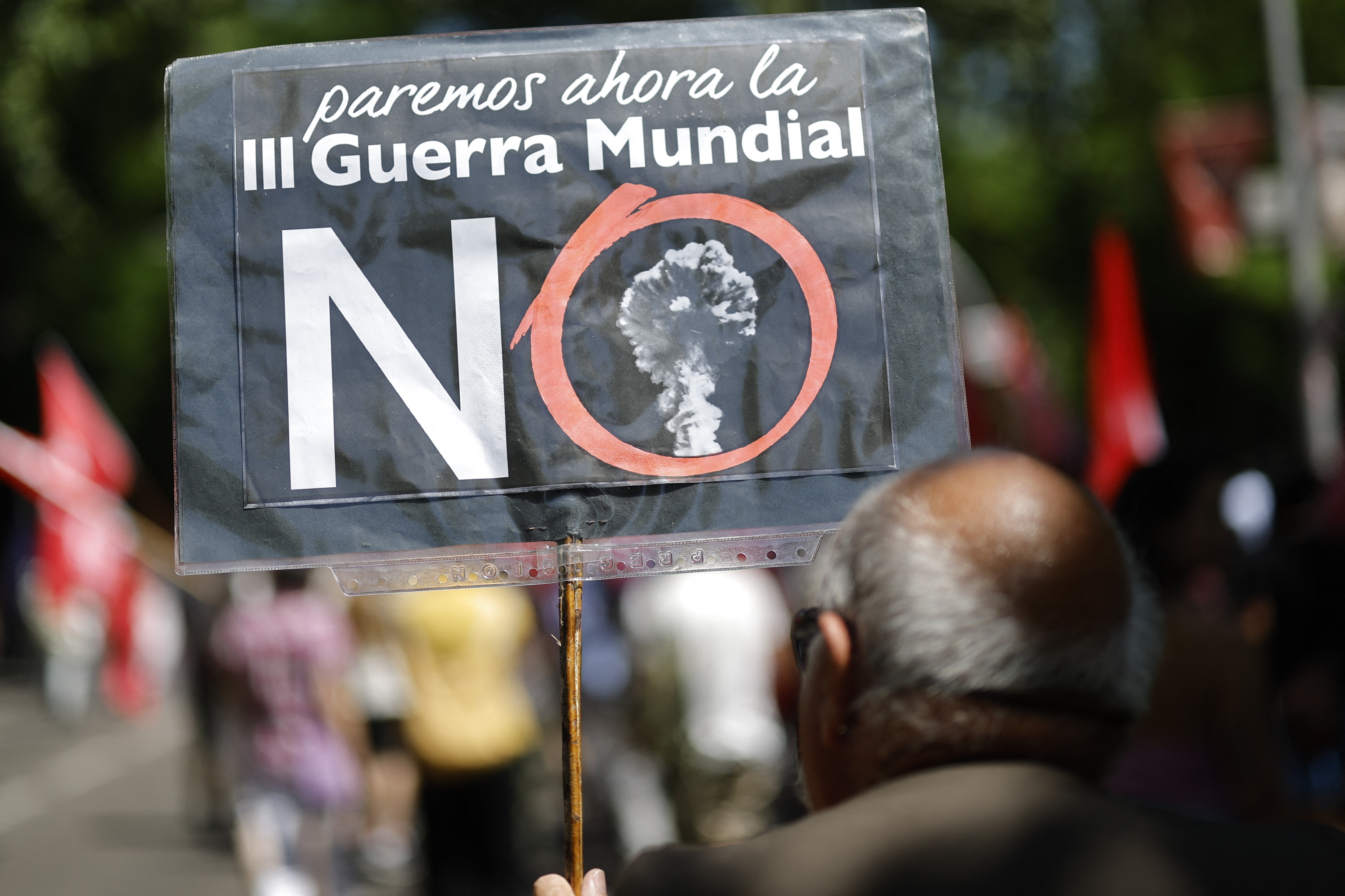 „Jos armele, sus pensiile!", "Nu vrem să plătim războiul tău cu Sănătatea şi Educaţia", "Israelul asasin, Europa sponsor", au mai scandat participanţii, cu aluzii nu doar la războiul din Ucraina, ci şi la cel din Fâşia Gaza. La miting au participat de asemenea lideri politici ai stângii spaniole şi activişti pentru drepturi sociale.