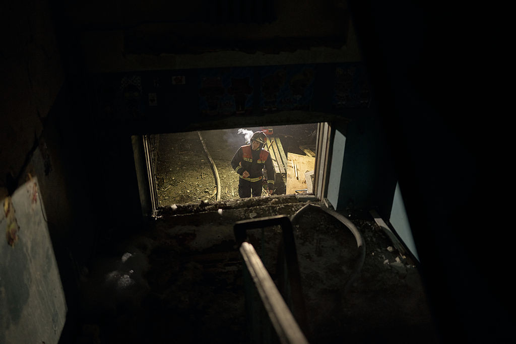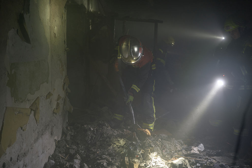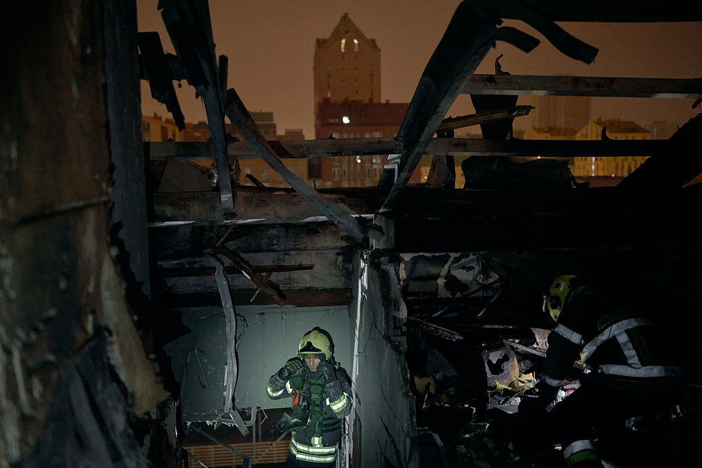 Kliciko a spus că atacul a declanşat un incendiu la etajele inferioare ale unui bloc înalt din vestul centrului oraşului, iar un alt incendiu a fost adus sub control într-un cartier central.