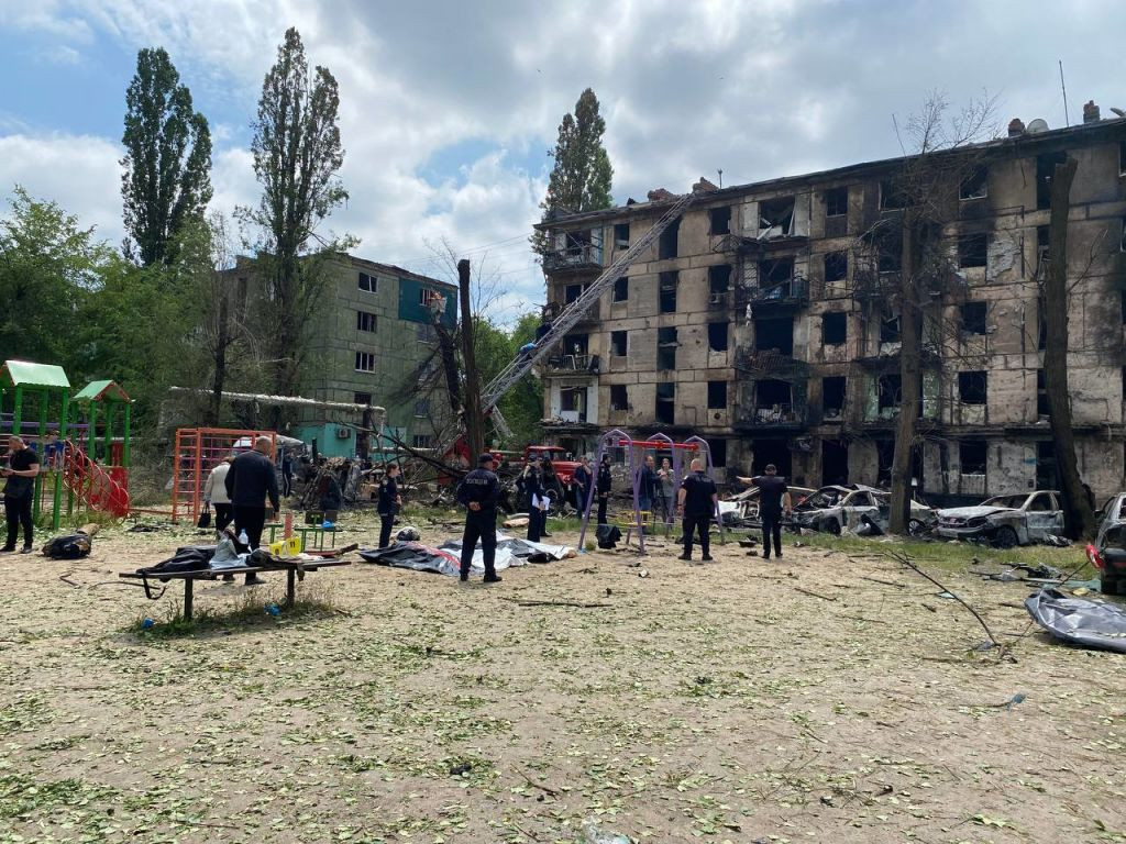 Guvernatorul regional Serhi Lîsak a declarat că patru persoane au fost ucise în blocul de apartamente şi şase în depozit. Primarul Oleksandr Vilkul a anunţat că o persoană este încă prinsă sub dărâmături şi că 28 au fost rănite, 12 dintre ele fiind tratate în spital.