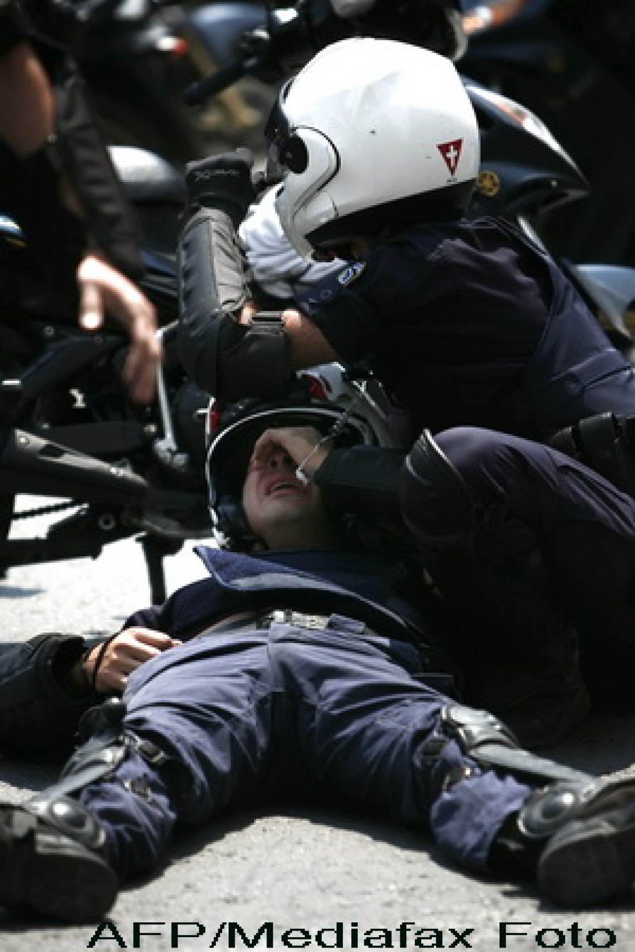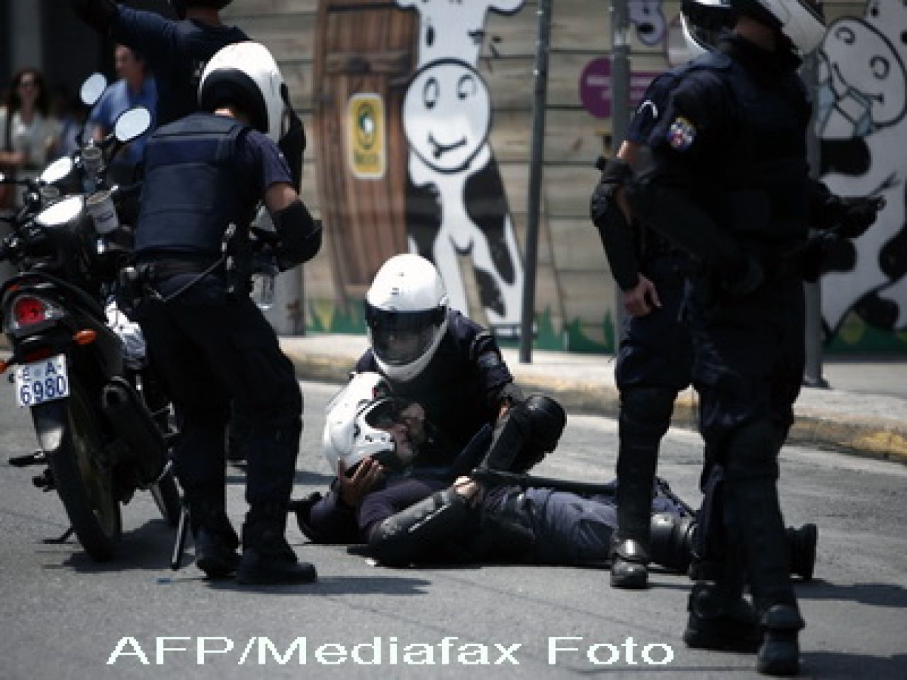 Grecia inca fierbe sub presiunea sociala. Un politist a fost ranit marti in capitala elena dupa ce mai multi participanti la un miting privind pensiile au aruncat cu pietre in fortele de ordine.