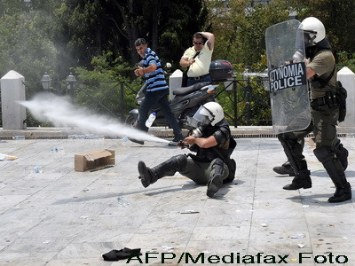 Atena fierbe: manifestantii s-au luptat cu politia, la un miting