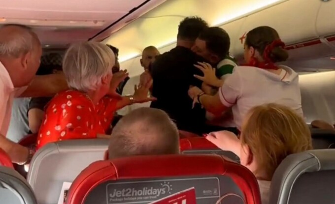 Avionul Jet2 Airline, care părăsise Antalya, Turcia, spre Leeds, Anglia, a fost forțat să aterizeze de urgență în Bulgaria pentru ca echipajul să se descurce cu bătăușii de la bord.