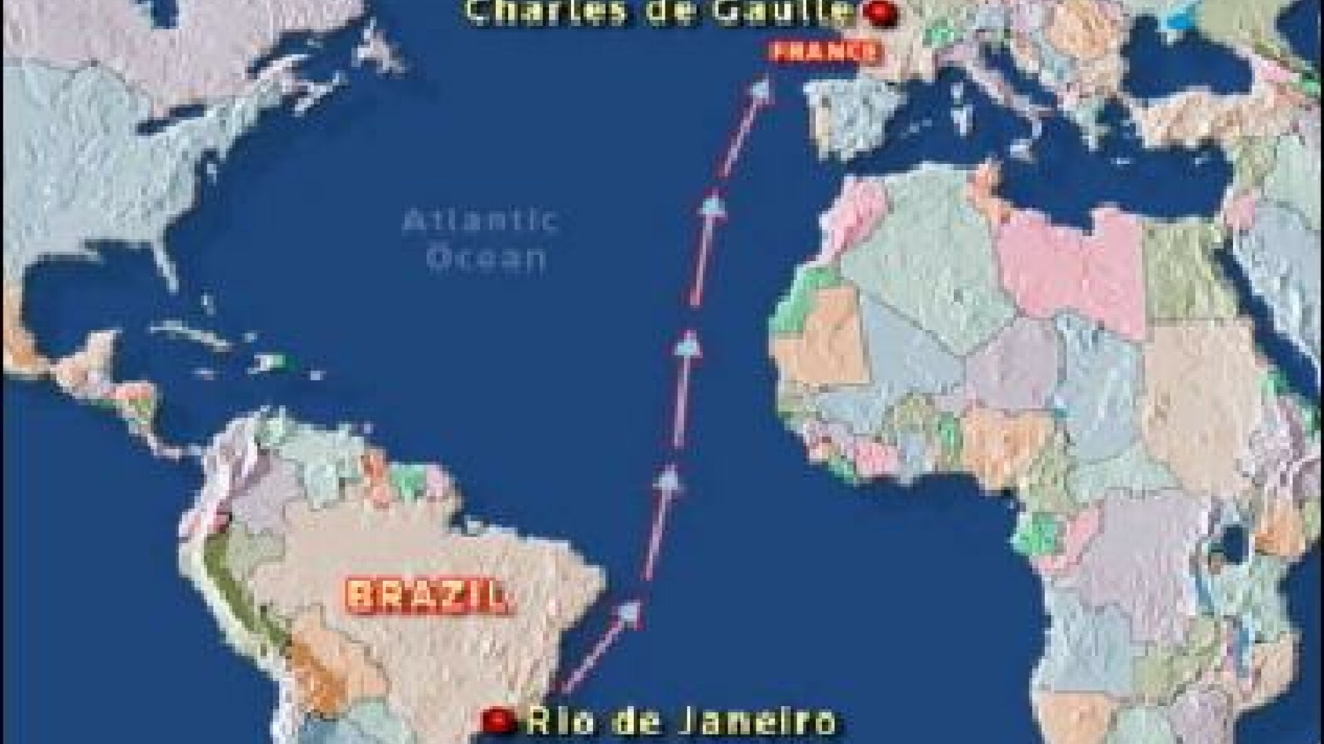 Avionul Air France, cu 216 pasageri si 12 membri ai echipajului la bord, care zbura pe ruta Rio de Janeiro - Paris, a disparut de pe ecranele radarelor in noaptea de duminica spre luni, in timp ce se afla deasupra Oceanului Atlantic.
