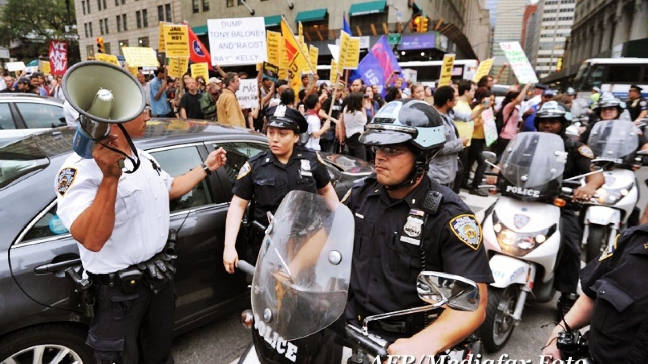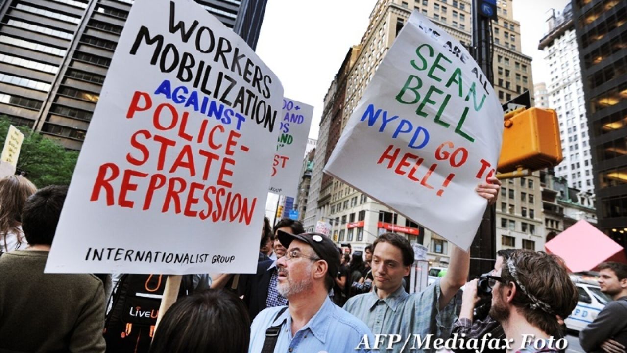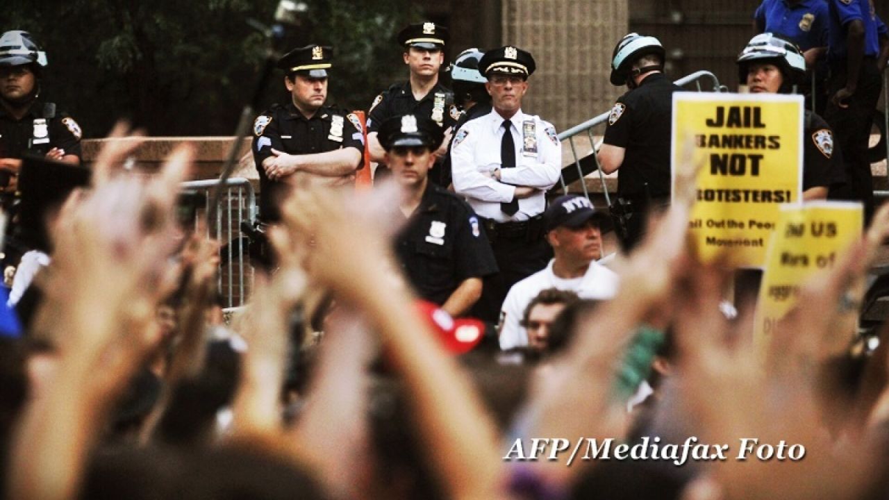 "Bancherii, toti nazisti", "oamenii inaintea dolarilor" sau "NYPD protejeaza miliardarii si Wall Street", se putea citi pe pancartele afisate de manifestanti, care scandau "am fost vanduti", in timp ce erau supravegheati atent de politisti.