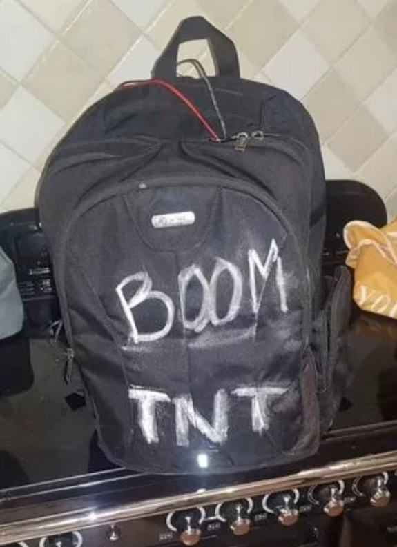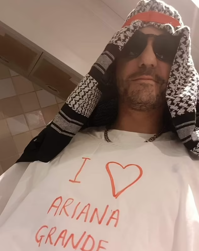 David Wootton s-a îmbrăcat în haine specifice portului arăbesc și într-un tricou cu „I love you Ariana Grande” scris de mână cu un stilou. El a postat o fotografie pe Facebook cu un rucsac negru cu cuvintele „Boom” și „TNT” mâzgălite peste el, scrie Mirror.