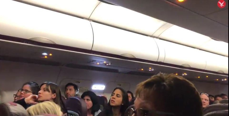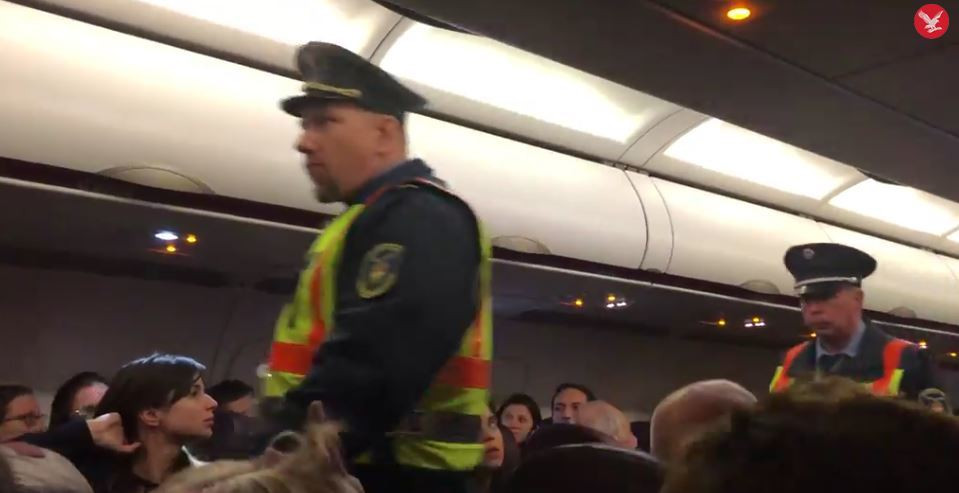 Pasagerilor li s-a cerut să rămână pe locurile lor, însă cei implicaţi în bătaie s-au ridicat, şi-au luat bagajele de mână şi s-au îndreptat spre spatele avionului. Căpitanul a anunţat că a sunat la poliţie, un anunţ întâmpinat cu aplauze de ceilalţi călători.