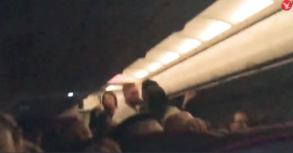 În spatele avionului a izbucnit o bătaie. După ce au fost împărţiţi câţiva pumni, ordinea a fost restabilită parţial şi avionul a putut ateriza, cu o întârziere de jumătate de oră.