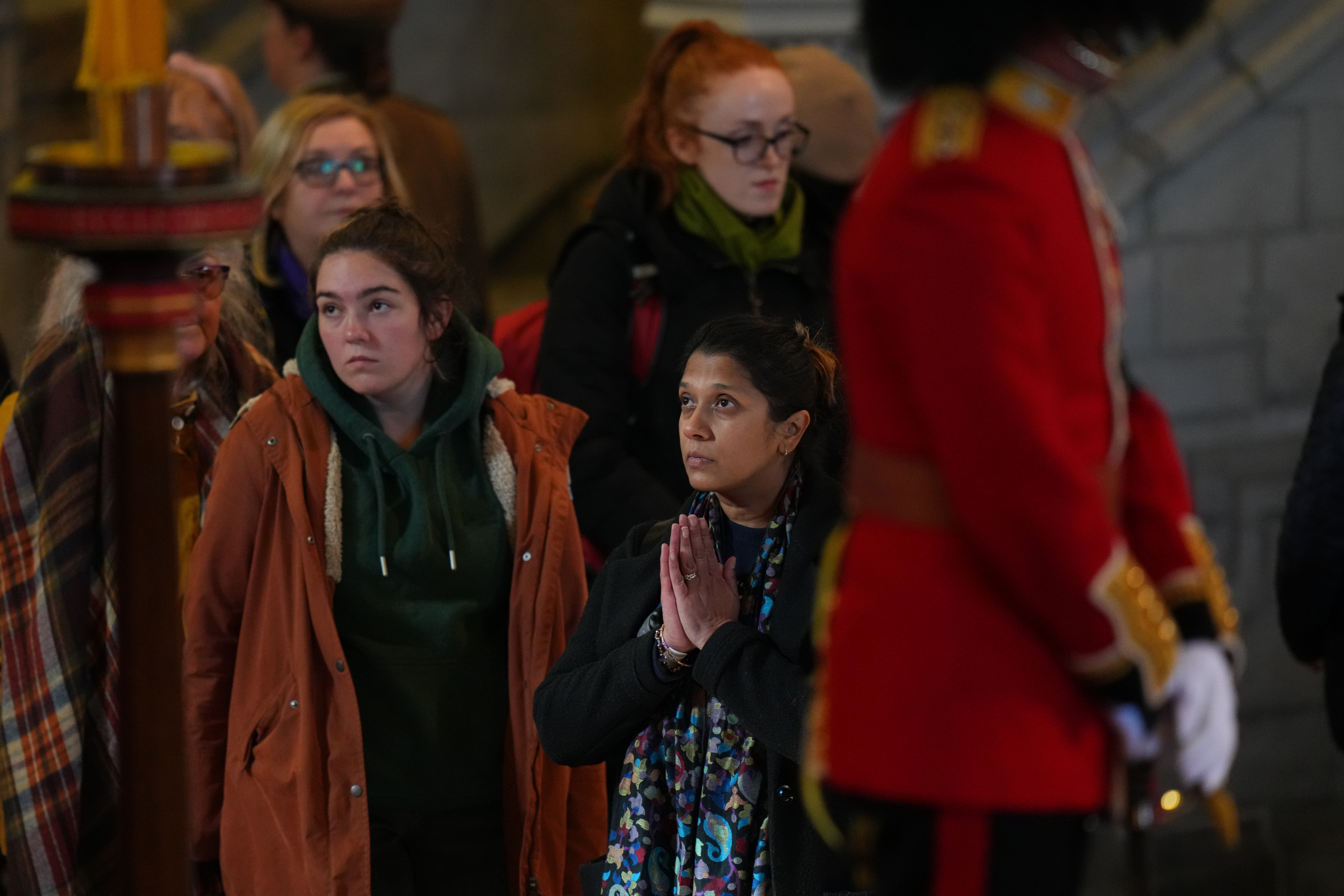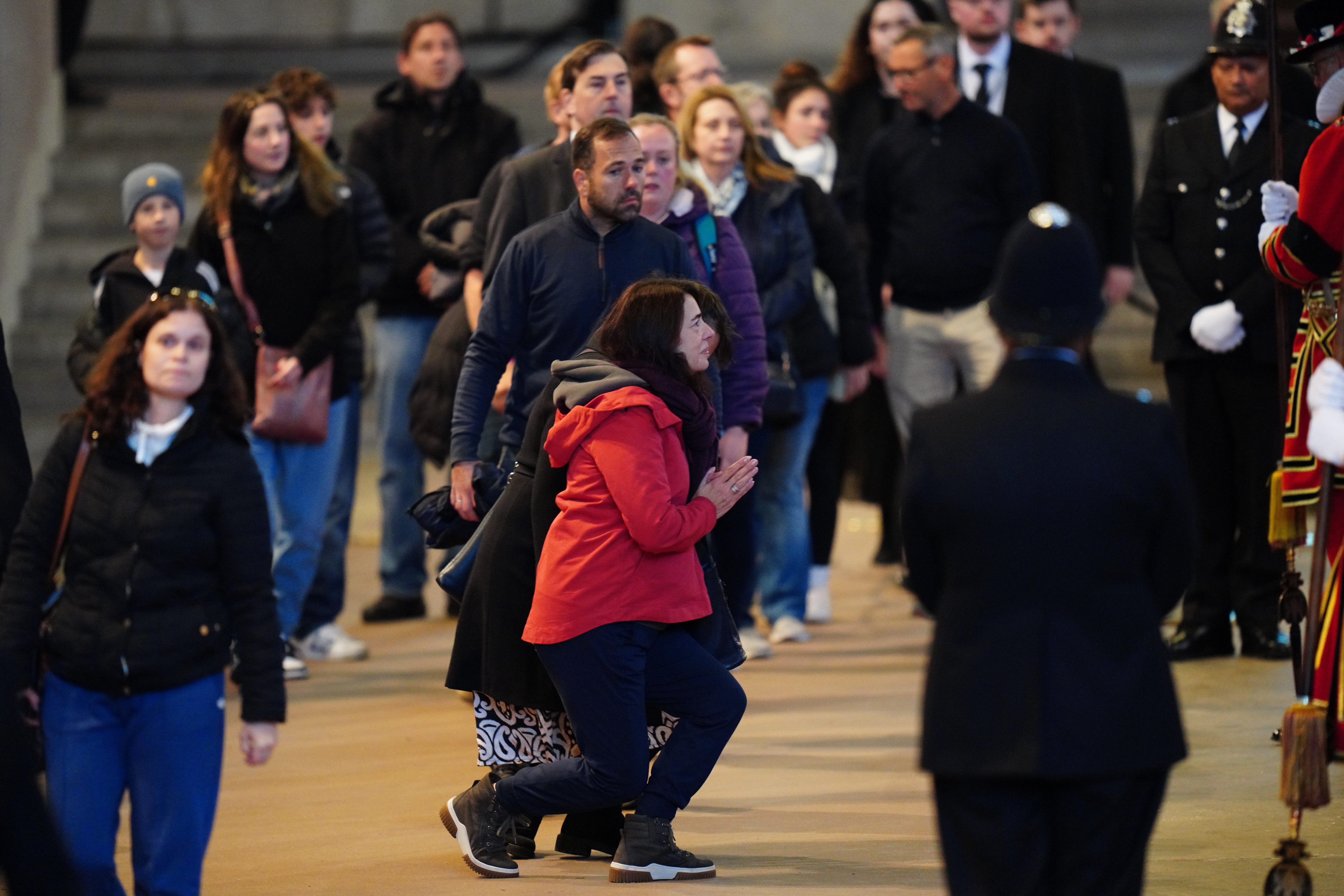 Astăzi va fi probabil ultima ocazie pentru ca publicul să treacă pe la catafalcul suveranei. Sicriul rămânând expus în Westminster Hall până în zorii zilei de luni, înainte de funeraliile de stat de la Westminster Abbey.
