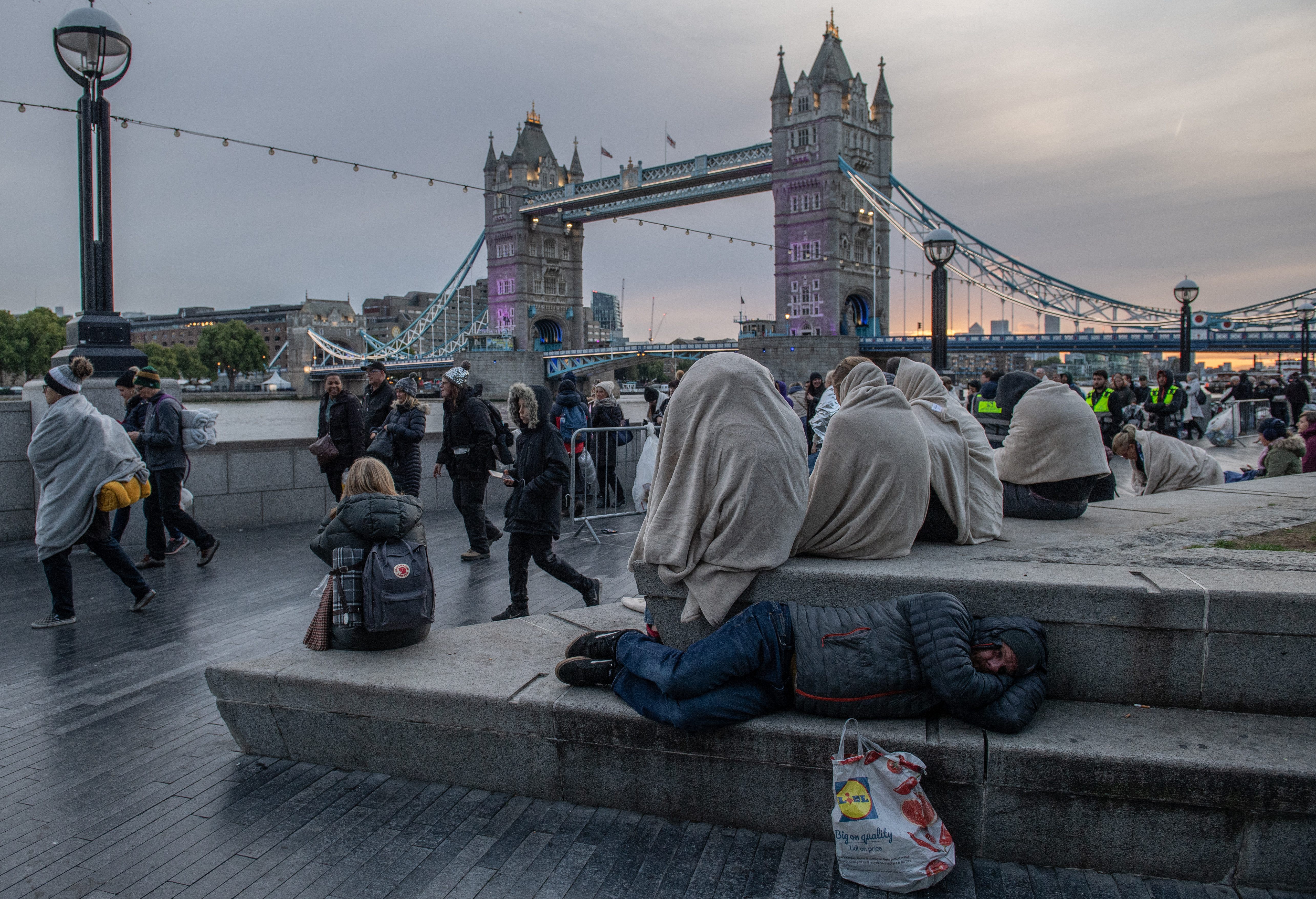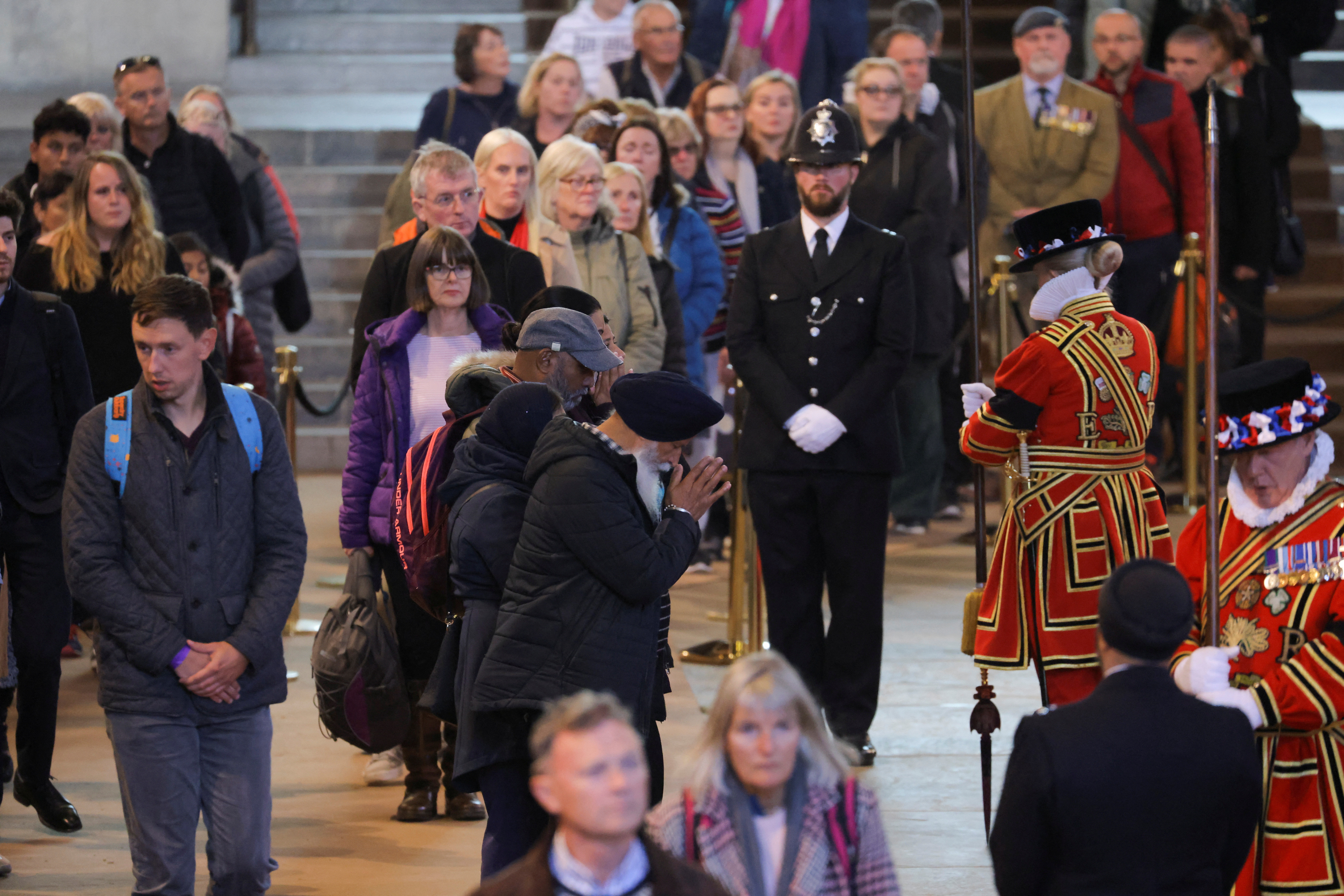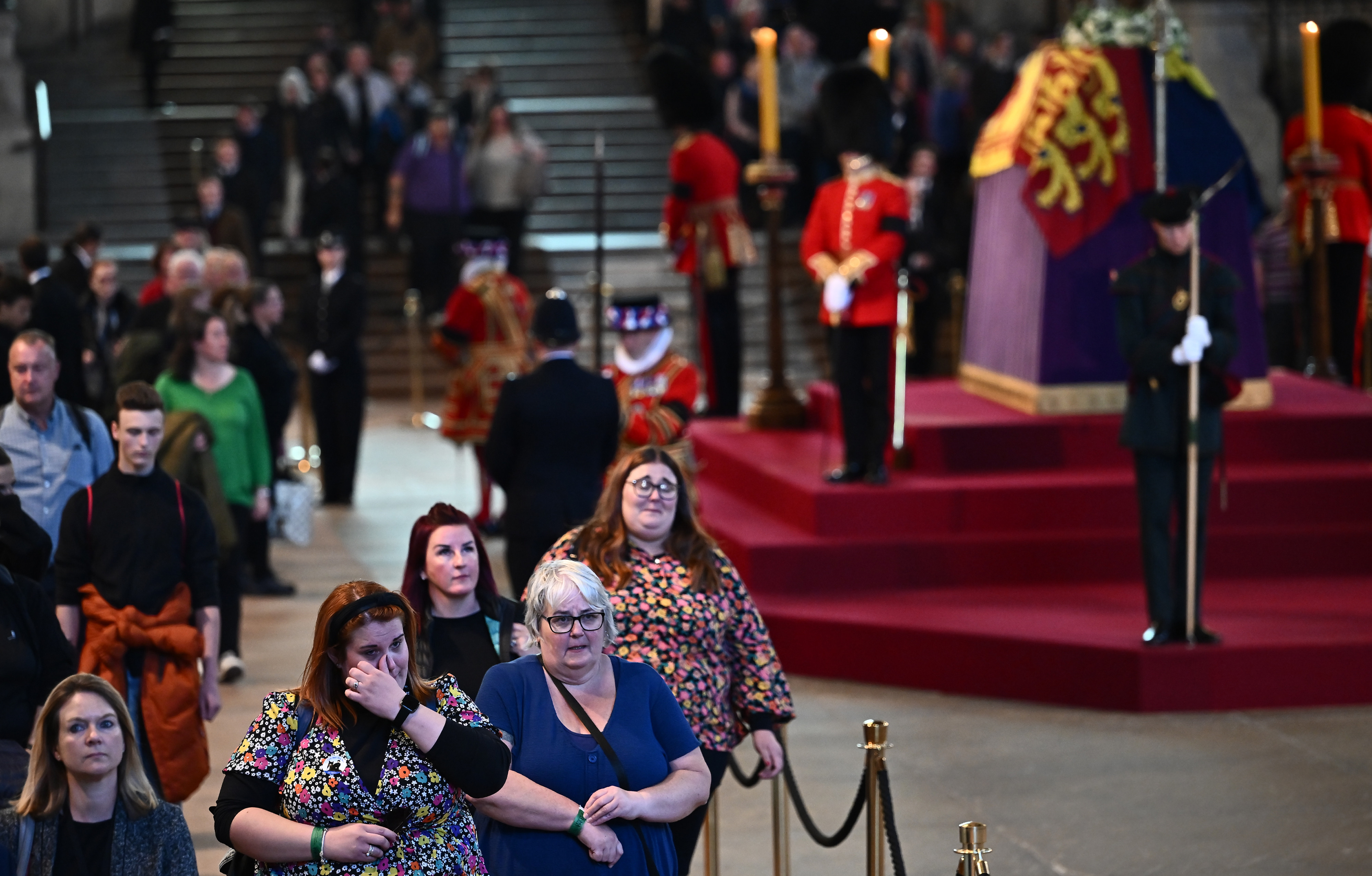Cei care au trecut pe la catafalcul reginei Elisabeta a II-a au fost nevoiți să aștepte zeci de ore la coadă. Mulți dintre cei care au adus un ultim omagiu și-au petrecut noaptea pe străzi și au suportat ore întregi de frig și ploaie.