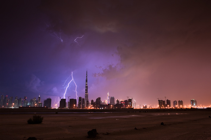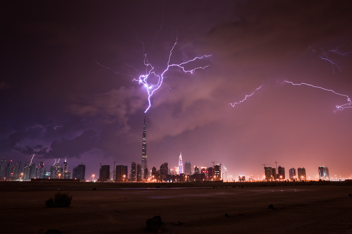 Cea mai inalta cladire din lume, Burj Khalifa, a fost lovita recent lovita de fulgere! Autorul pozelor, care deja au facut inconjurul lumii, este celebrul fotograf Alisdair Miller.
