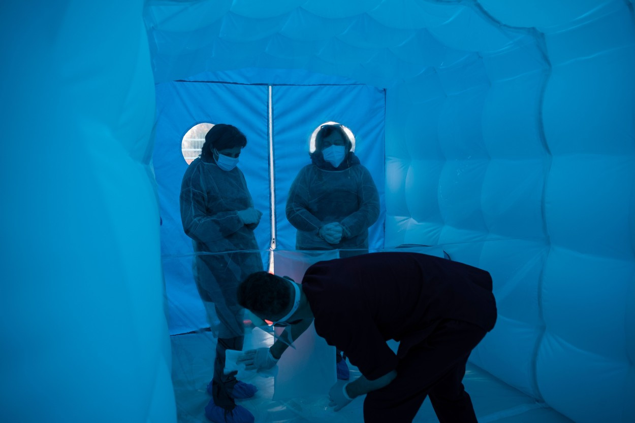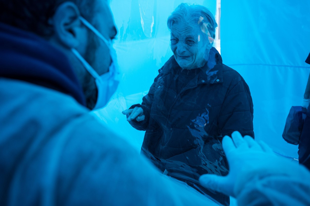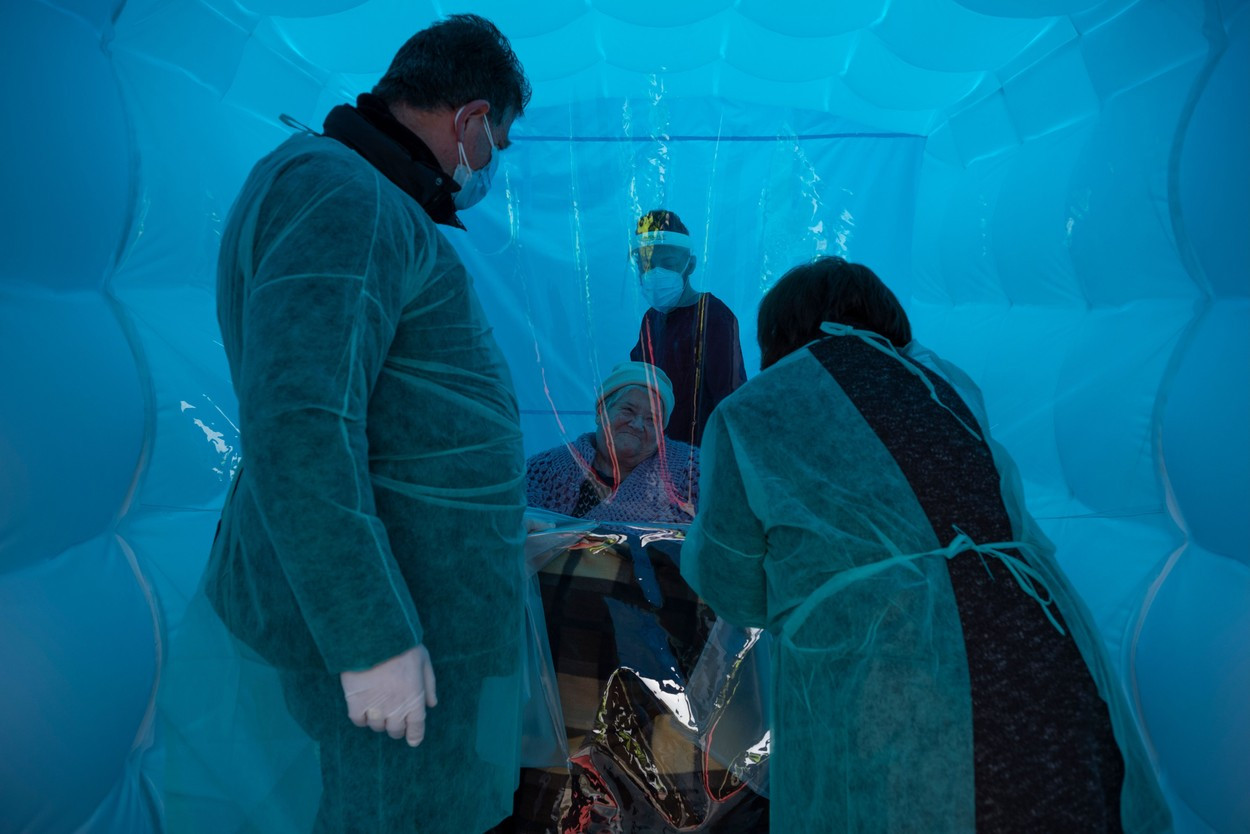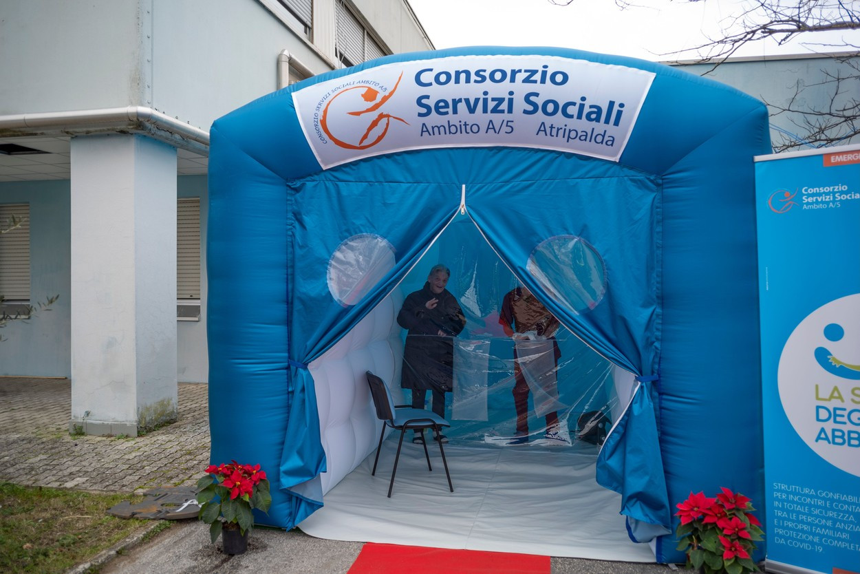 Cameră mobilă de îmbrățișări, pentru bătrânii izolați din Italia care vor să-i ia în brațe pe cei dragi GALERIE FOTO