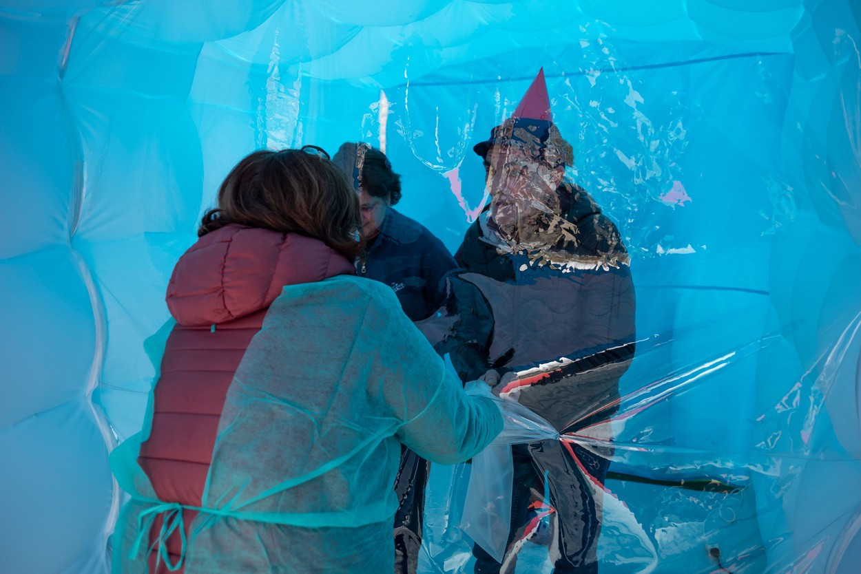Privaţi de contactul fizic din cauza COVID-19, rezidenţii centrelor de asistenţă pentru vârstnici dintr-o provincie italiană dispun de o soluţie originală pentru a-i putea ţine în braţe pe cei dragi: o "cameră pentru îmbrăţişări" gonflabilă şi mobilă.