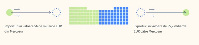 Acordul de liber schimb cu cele cinci țări din Mercosur ar elimina treptat taxele vamale pentru aproape toate bunurile comercializate între cele două blocuri, în următorii 15 ani.