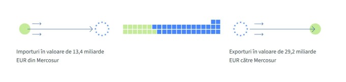 UE a exportat servicii în valoare de peste 29 de miliarde EUR către Mercosur, în timp ce Mercosur a exportat servicii în valoare de aproximativ 13,4 miliarde EUR către UE.
