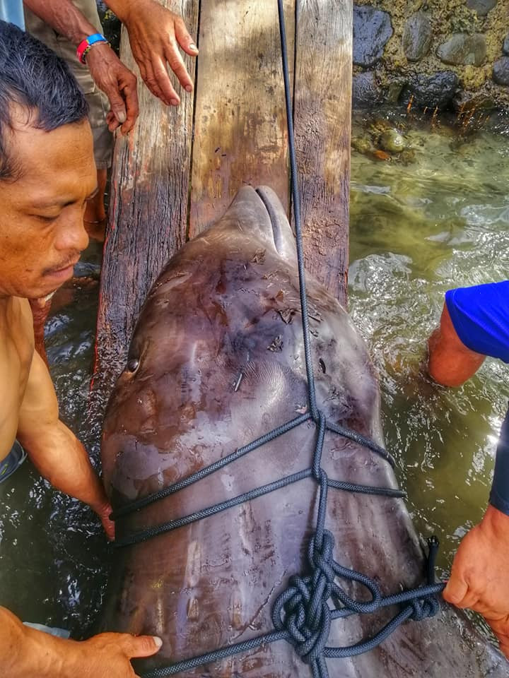 Ce se afla în stomacul unei balene găsită moartă pe o plajă din Filipine. FOTO