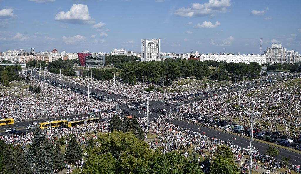 Zeci de mii de persoane s-au adunat duminică la Minsk pentru cel mai mare protest din istoria țării, după alegerile controversate care au zguduit țara.