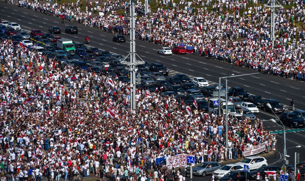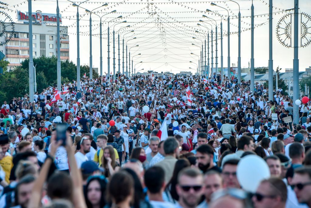 Cel mai mare protest din istoria țării în Belarus. Zeci de mii de oameni au mărșăluit pe străzi cu flori și baloane