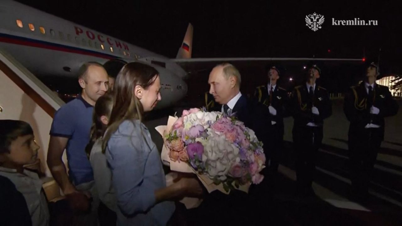 Cetăţenii ruşi implicaţi în complexul schimb de deţinuţi cu ţările occidentale au ajuns, în noaptea zilei de joi, la Moscova şi au fost întâmpinaţi la aeroport de însuşi preşedintele Vladimir Putin.