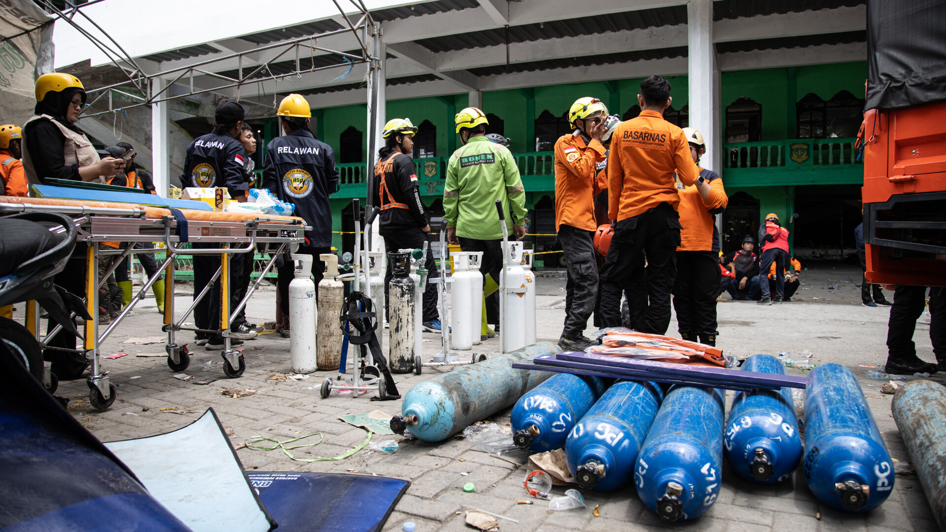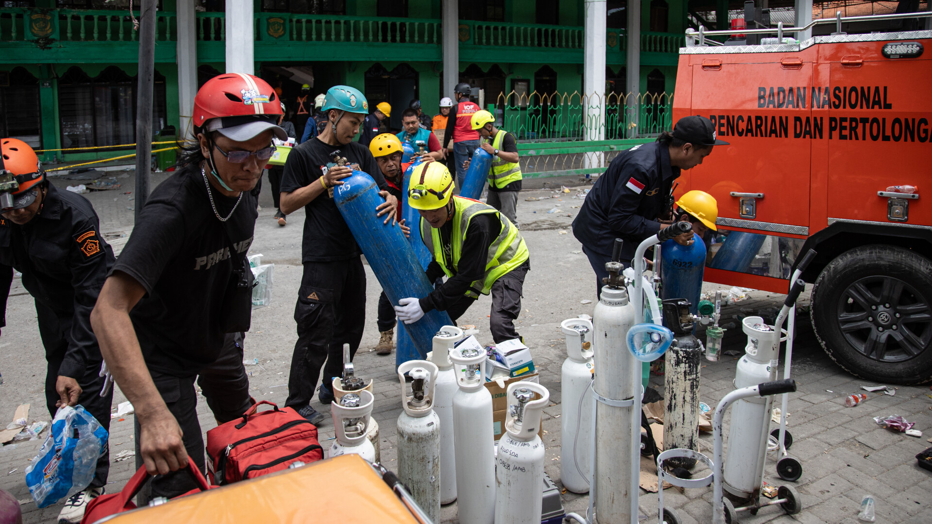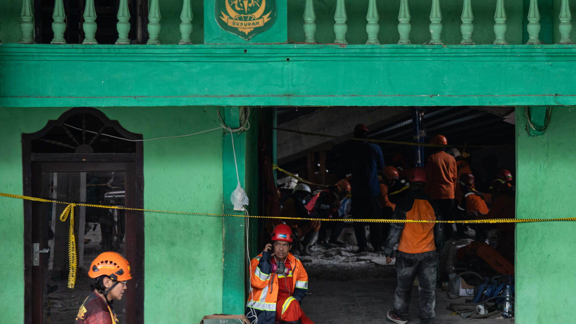 Peste 300 de salvatori lucrează disperaţi pentru a-i elibera pe supravieţuitori, miercuri dimineaţă, după ce structura a căzut pe sute de persoane, în principal băieţi adolescenţi, care participau la rugăciuni de după-amiază, luni, într-o sală de rugăciune la internatul vechi de un secol Khoziny Islamic din provincia Java de Est, care era supus unei extinderi neautorizate.