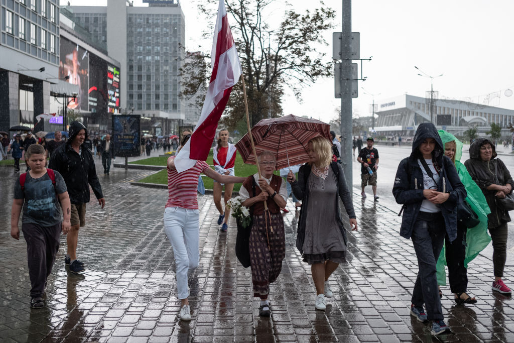 Vechiul steag al Belarusului a devenit un simbol al protestelor, astfel că, în prezent, poți fi arestat dacă ești văzut ținându-l în mână. În timpul unui protest, un scutier i-a confiscat Ninei steagul. În acel moment, femeia a ripostat și chiar l-a lovit pe unul dintre polițiști.
