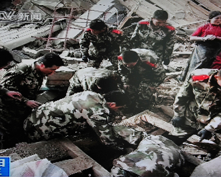 Televiziunea oficiala CCTV a prezentat imagini cu mai multi soldati si politia armata la ruinele unei case, incercand sa indeparteze daramaturile si sa caute supravietuitori.