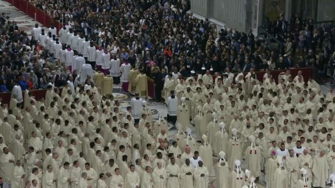 Mii de oameni s-au adunat la Vatican pentru a asculta slujba de Înviere. Liturghia Pascală a început imediat după apusul soarelui. Iar înainte de miezul nopții, potrivit tradiției, basilica s-a cufundat în întuneric și a avut loc ritualul pregătirii luminii pascale.